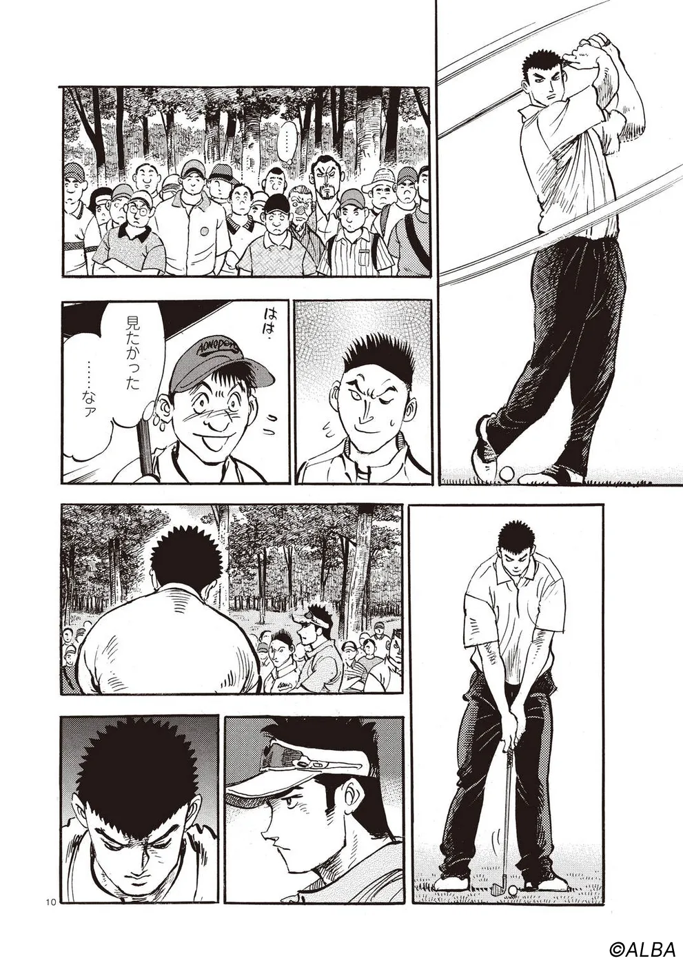 【第64巻あらすじ】スーパーアマチュア・松井英樹とのペアリングとなったAONオープン最終日。序盤から飛ばす二人は一進一退の攻防を繰り広げながらどんどんスコアを伸ばしていく。いつの間にか優勝争いに食い込んでいるのだが、お互いのプレーしか目に入っていないようなプレーが続く。