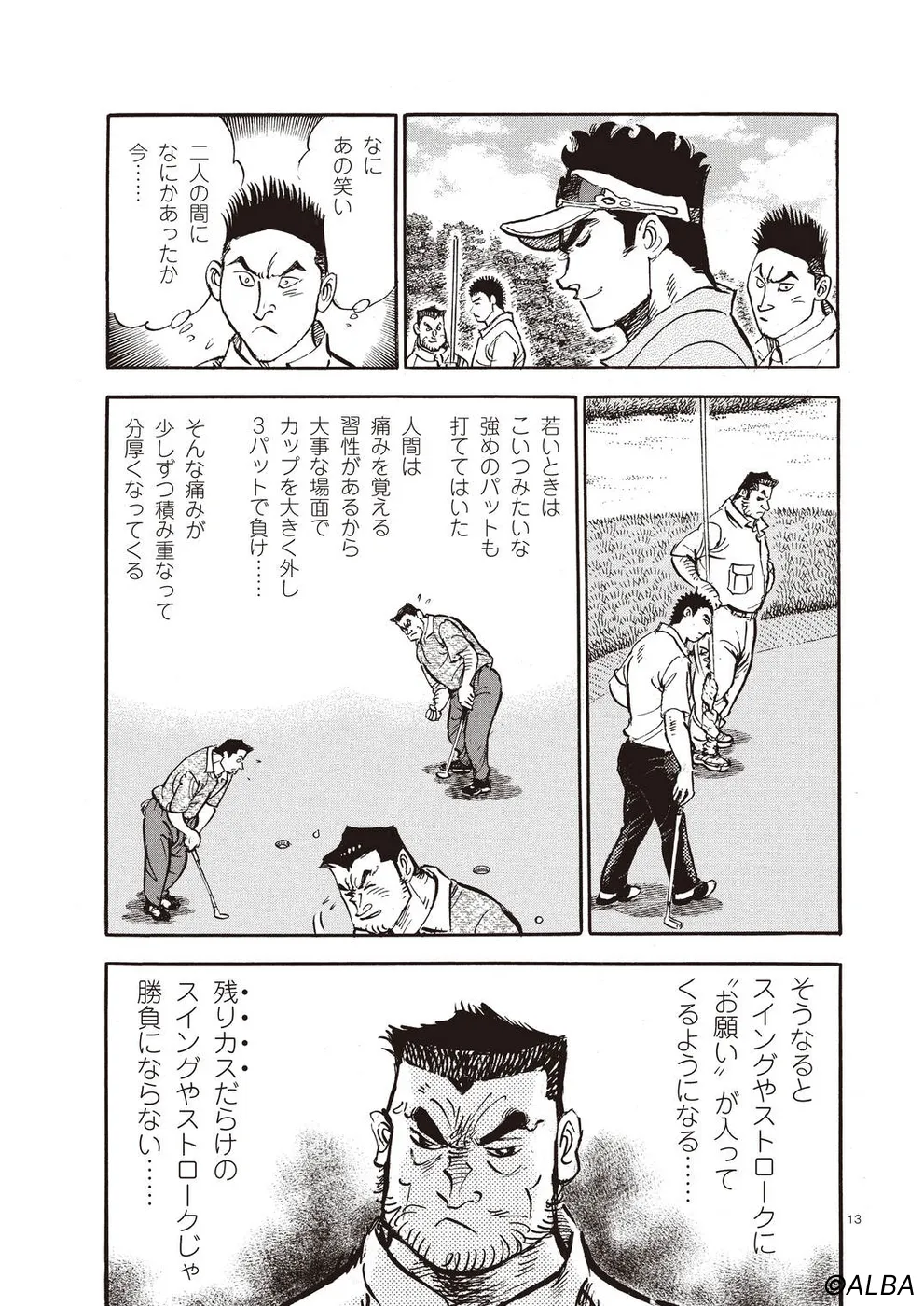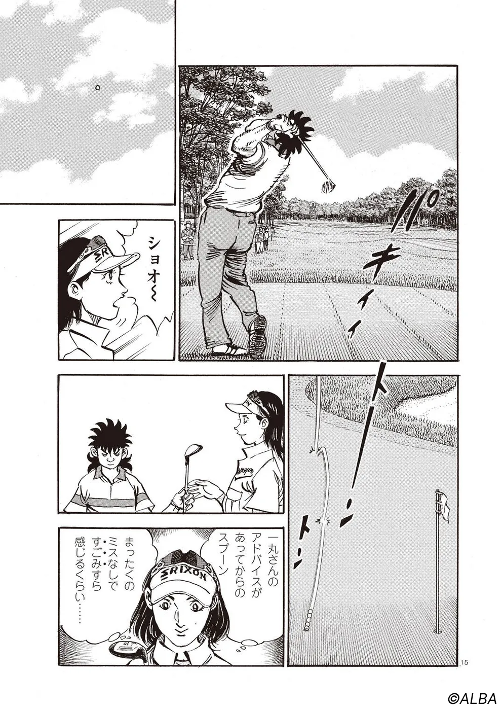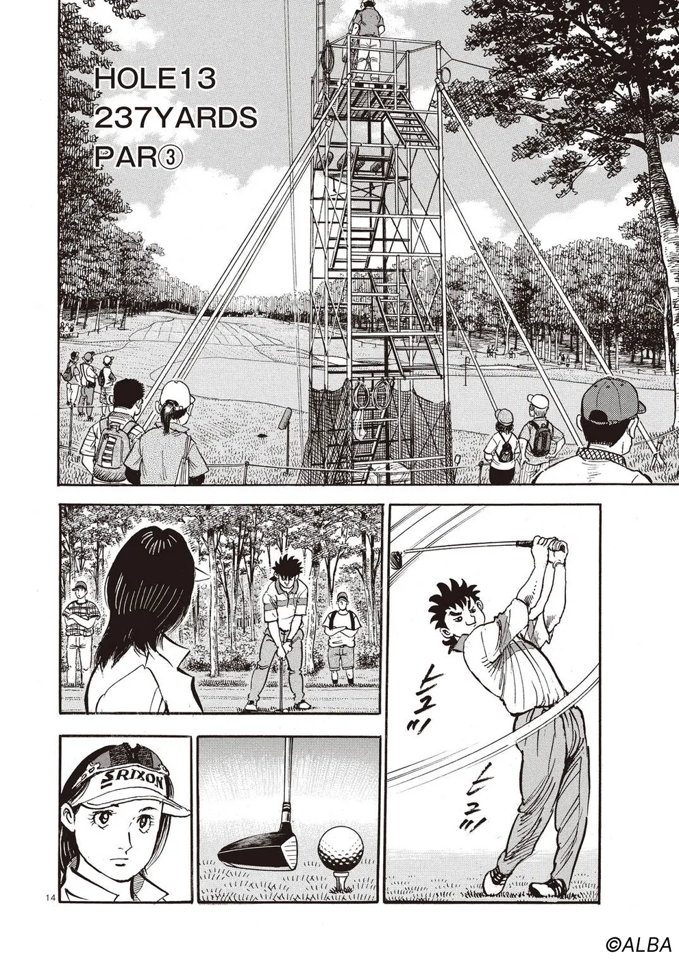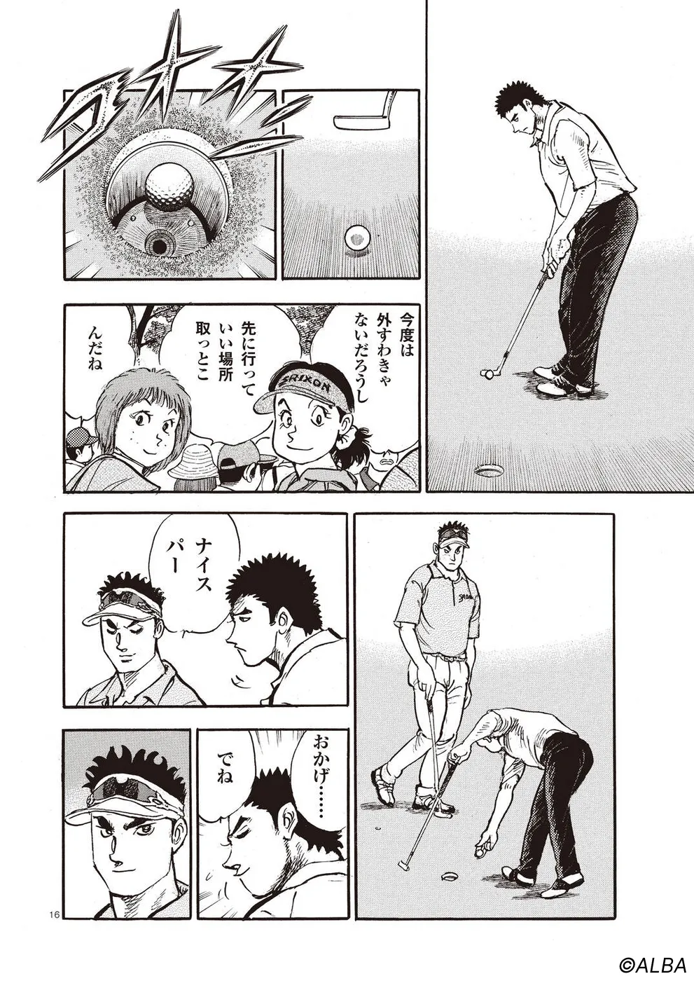【第64巻あらすじ】スーパーアマチュア・松井英樹とのペアリングとなったAONオープン最終日。序盤から飛ばす二人は一進一退の攻防を繰り広げながらどんどんスコアを伸ばしていく。いつの間にか優勝争いに食い込んでいるのだが、お互いのプレーしか目に入っていないようなプレーが続く。