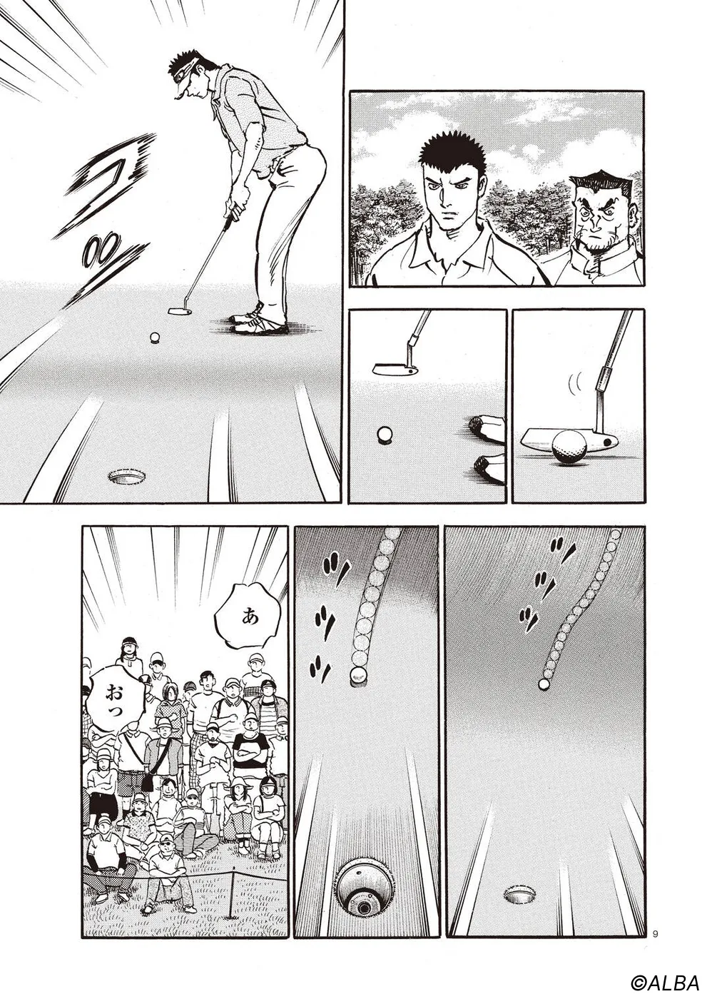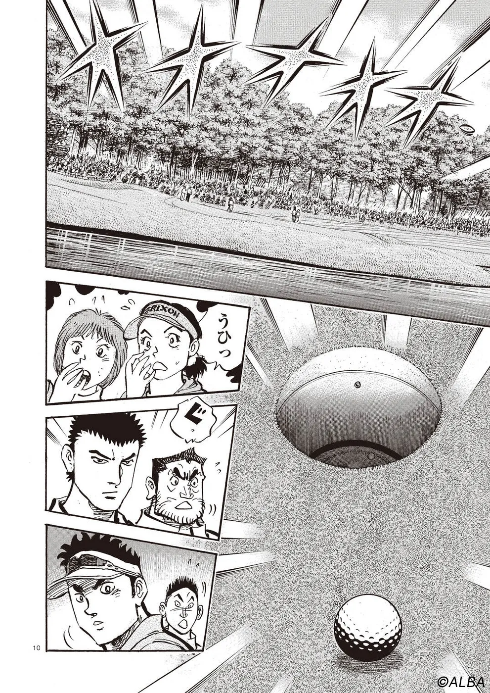 【第64巻あらすじ】スーパーアマチュア・松井英樹とのペアリングとなったAONオープン最終日。序盤から飛ばす二人は一進一退の攻防を繰り広げながらどんどんスコアを伸ばしていく。いつの間にか優勝争いに食い込んでいるのだが、お互いのプレーしか目に入っていないようなプレーが続く。