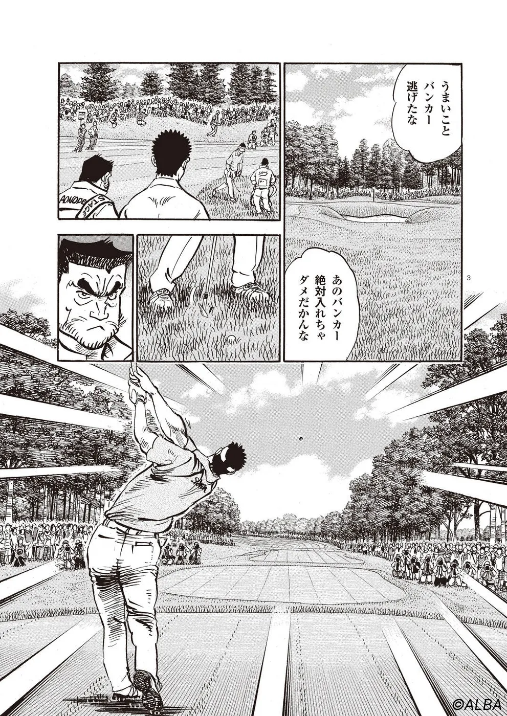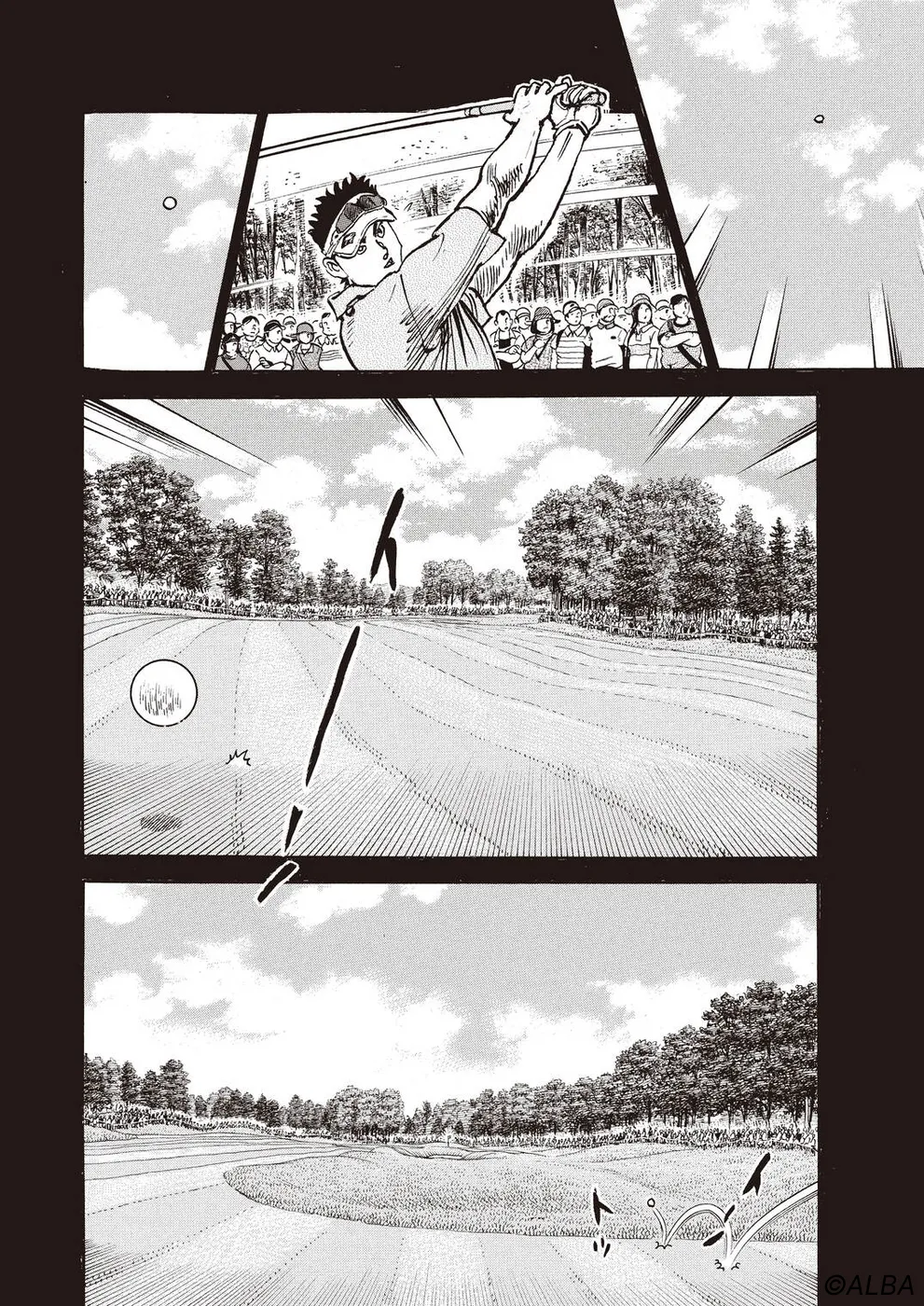 【第64巻あらすじ】スーパーアマチュア・松井英樹とのペアリングとなったAONオープン最終日。序盤から飛ばす二人は一進一退の攻防を繰り広げながらどんどんスコアを伸ばしていく。いつの間にか優勝争いに食い込んでいるのだが、お互いのプレーしか目に入っていないようなプレーが続く。