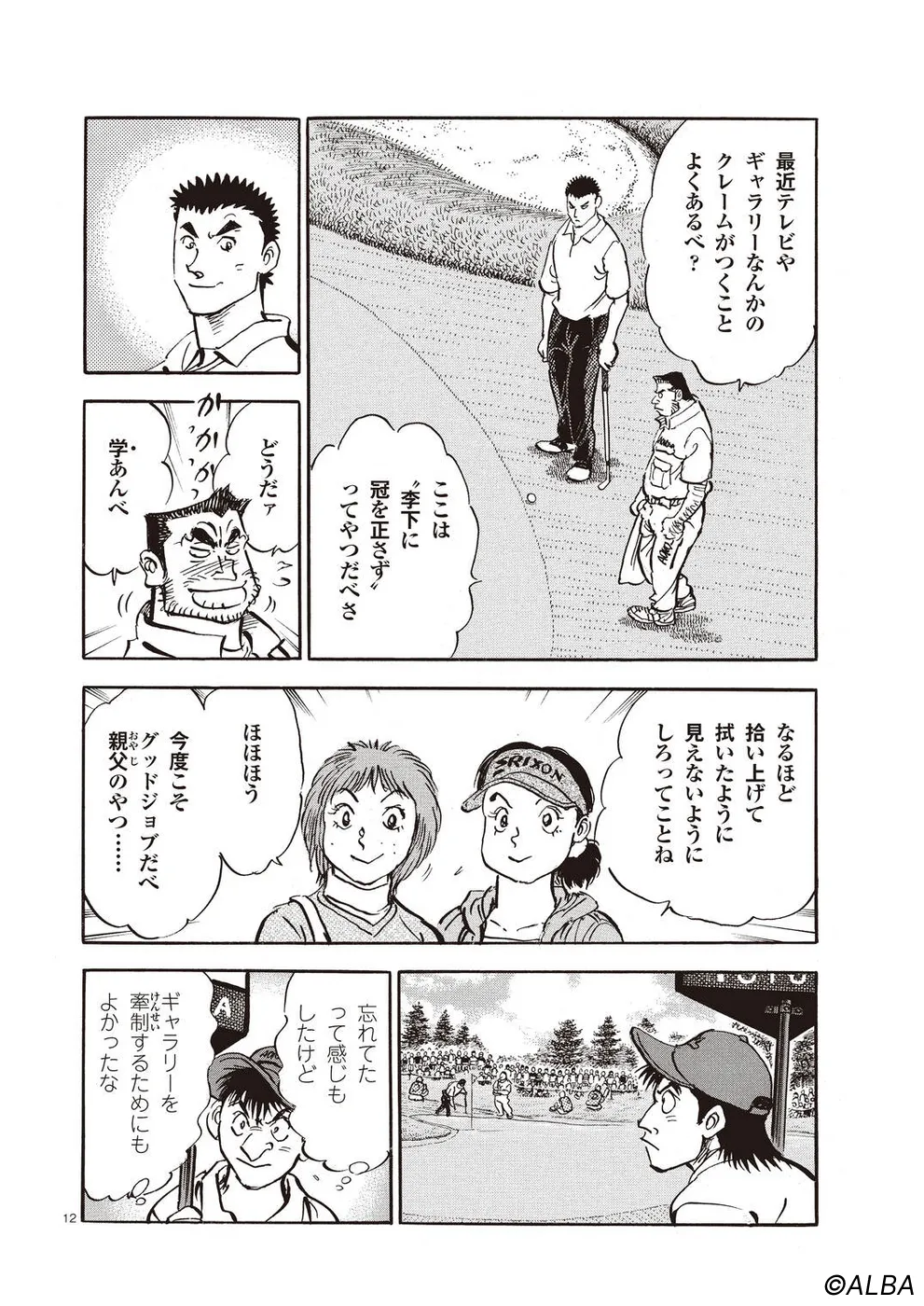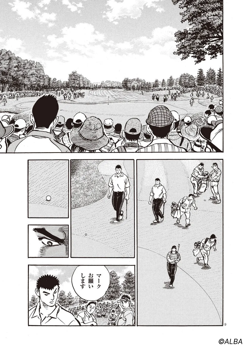 【第64巻あらすじ】スーパーアマチュア・松井英樹とのペアリングとなったAONオープン最終日。序盤から飛ばす二人は一進一退の攻防を繰り広げながらどんどんスコアを伸ばしていく。いつの間にか優勝争いに食い込んでいるのだが、お互いのプレーしか目に入っていないようなプレーが続く。