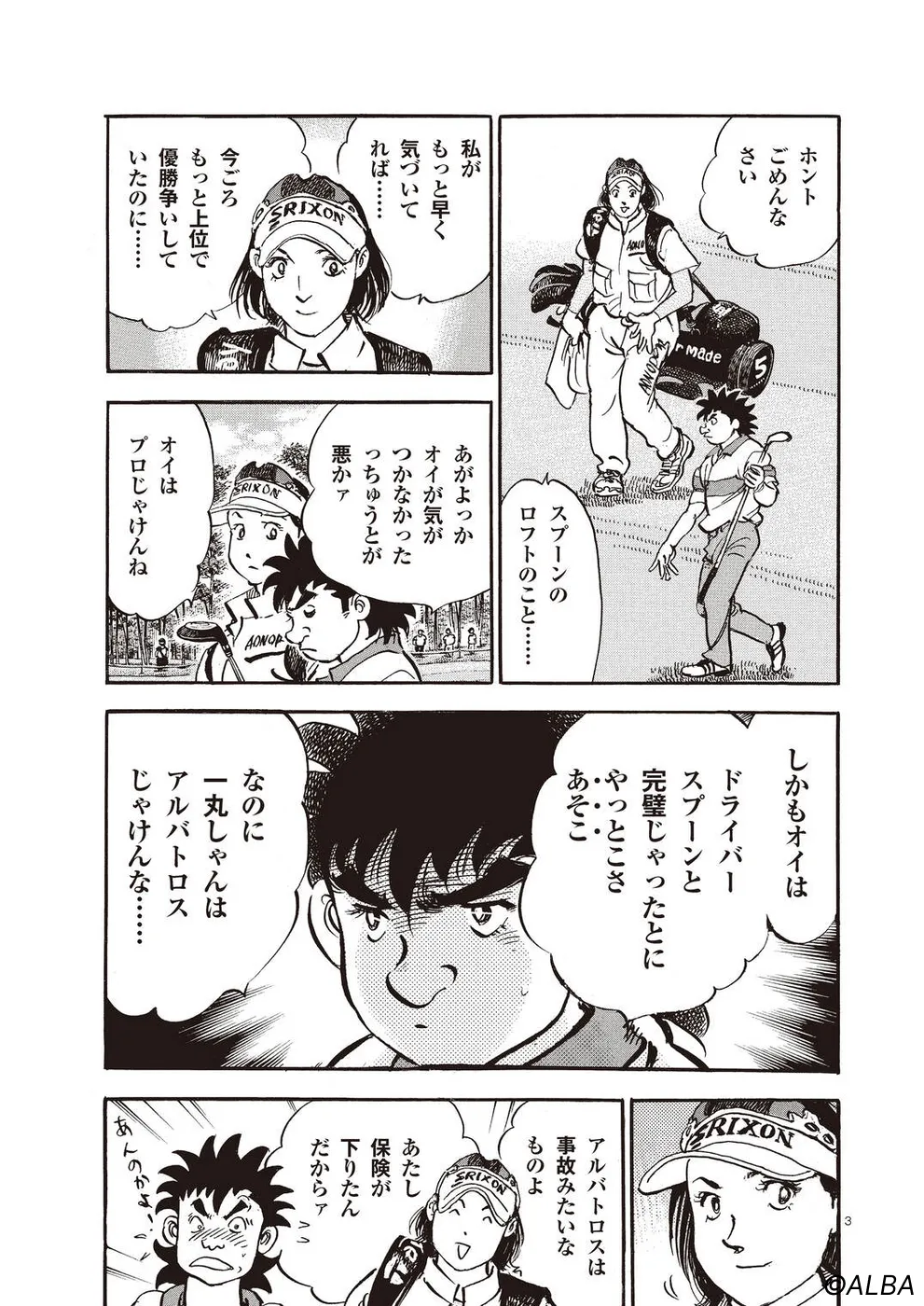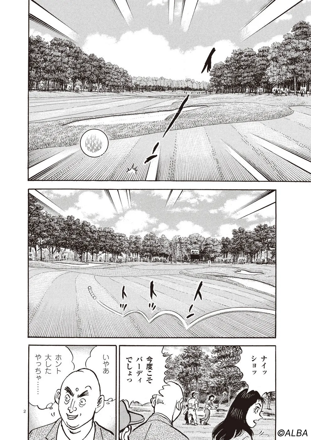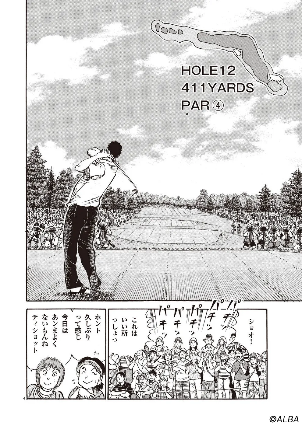 【第64巻あらすじ】スーパーアマチュア・松井英樹とのペアリングとなったAONオープン最終日。序盤から飛ばす二人は一進一退の攻防を繰り広げながらどんどんスコアを伸ばしていく。いつの間にか優勝争いに食い込んでいるのだが、お互いのプレーしか目に入っていないようなプレーが続く。
