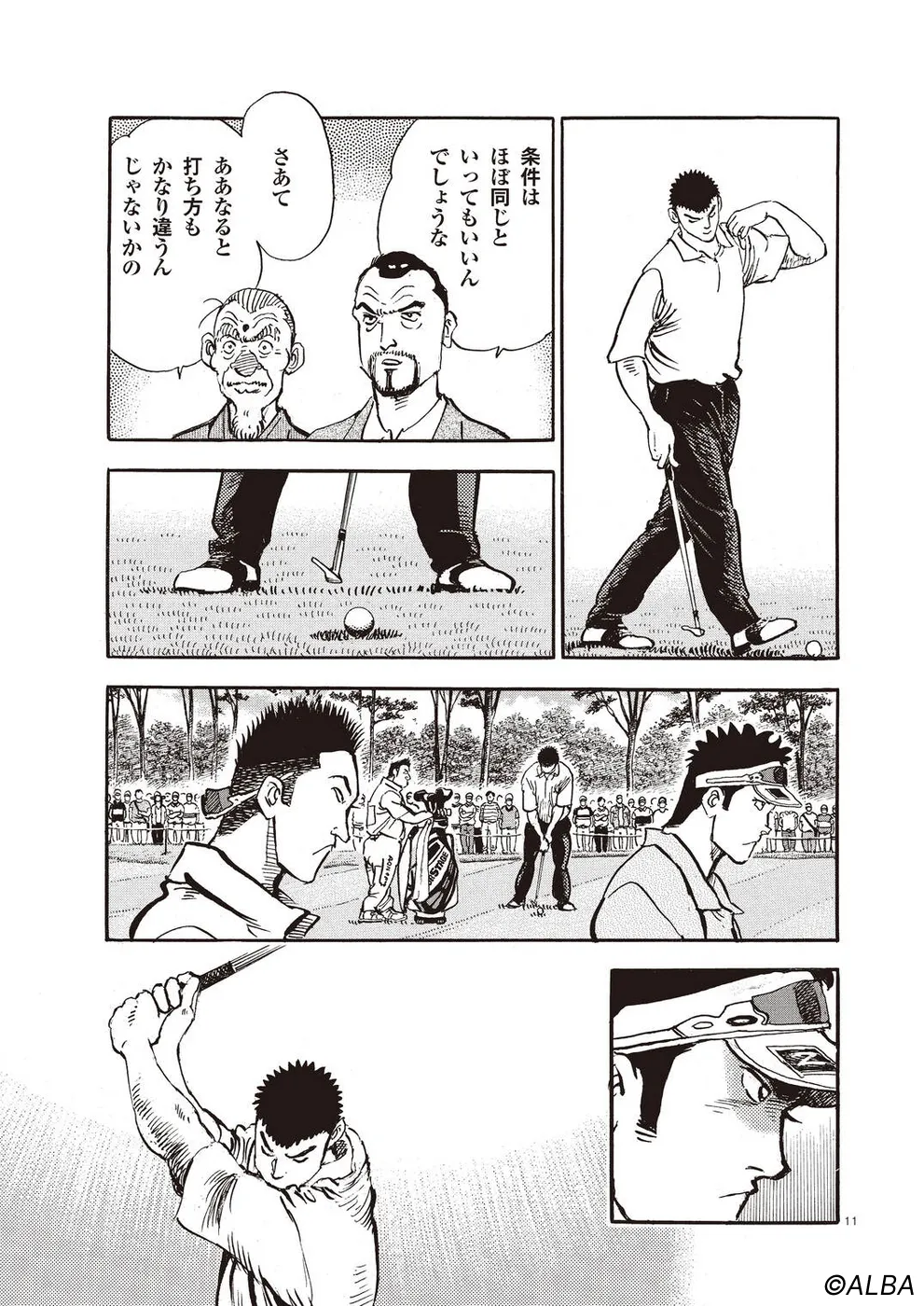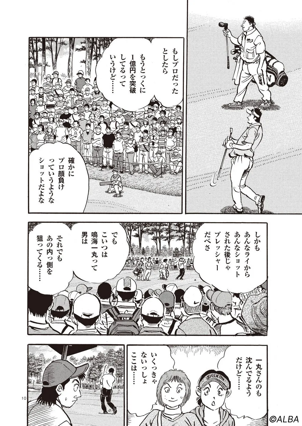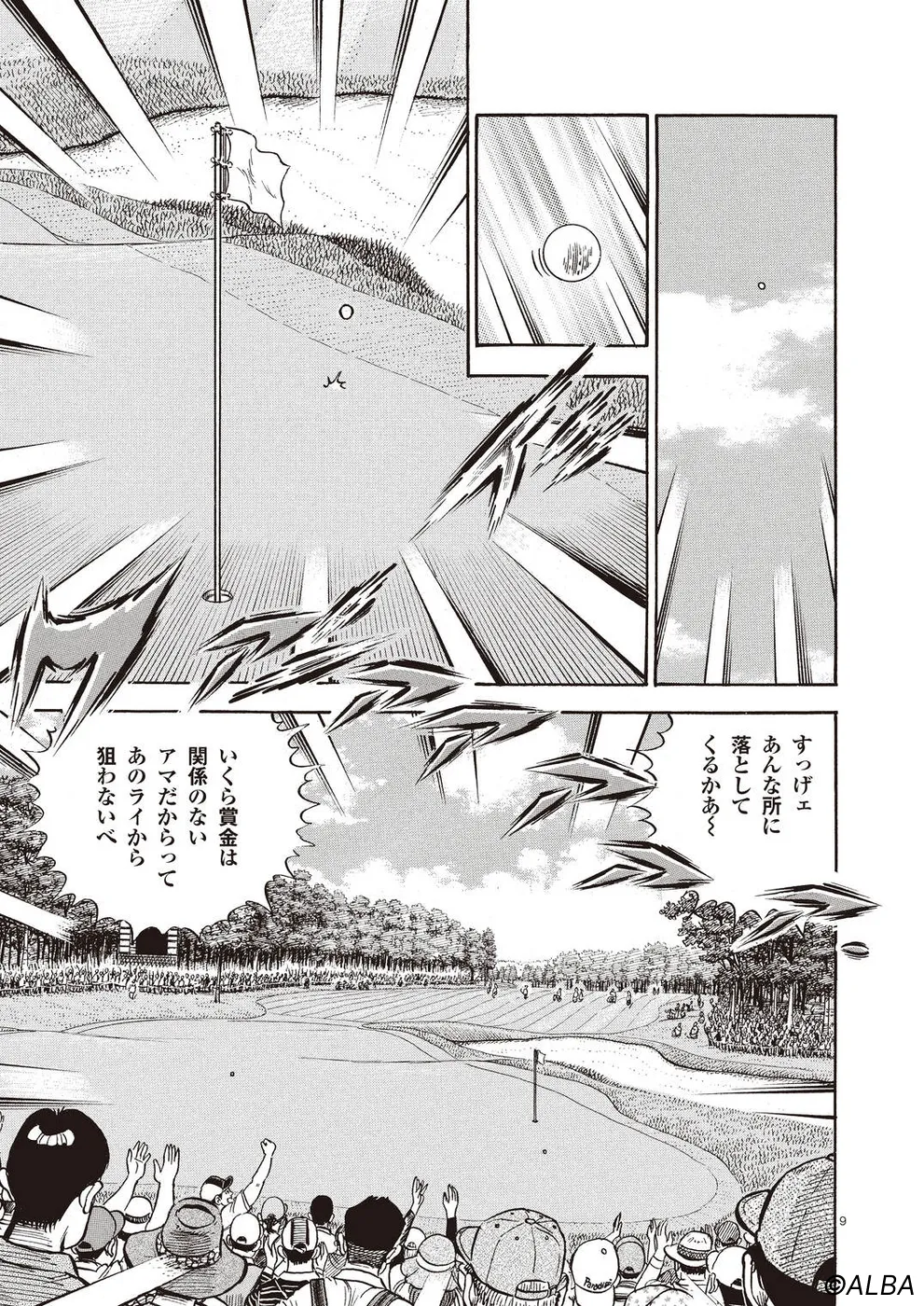 【第64巻あらすじ】スーパーアマチュア・松井英樹とのペアリングとなったAONオープン最終日。序盤から飛ばす二人は一進一退の攻防を繰り広げながらどんどんスコアを伸ばしていく。いつの間にか優勝争いに食い込んでいるのだが、お互いのプレーしか目に入っていないようなプレーが続く。