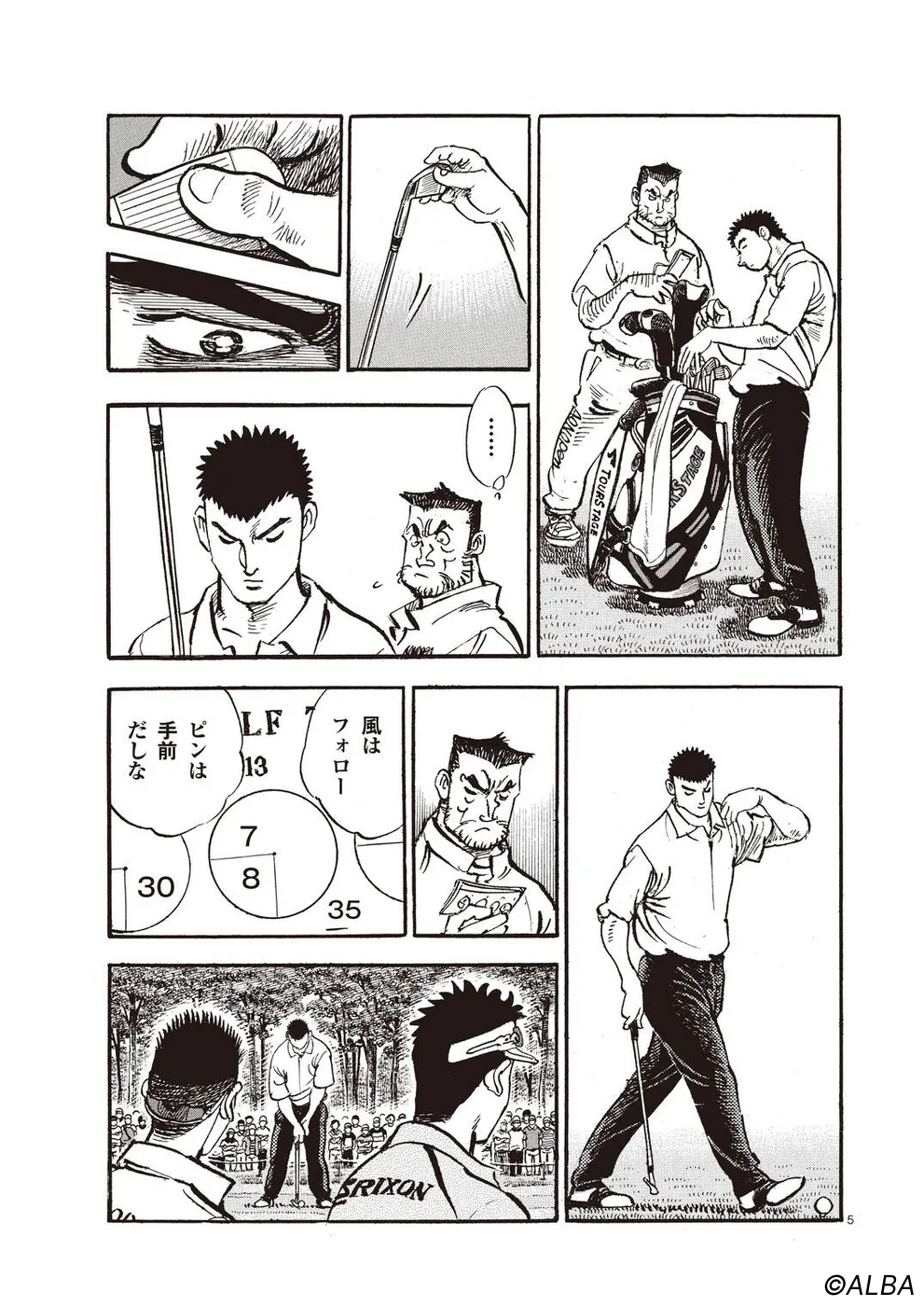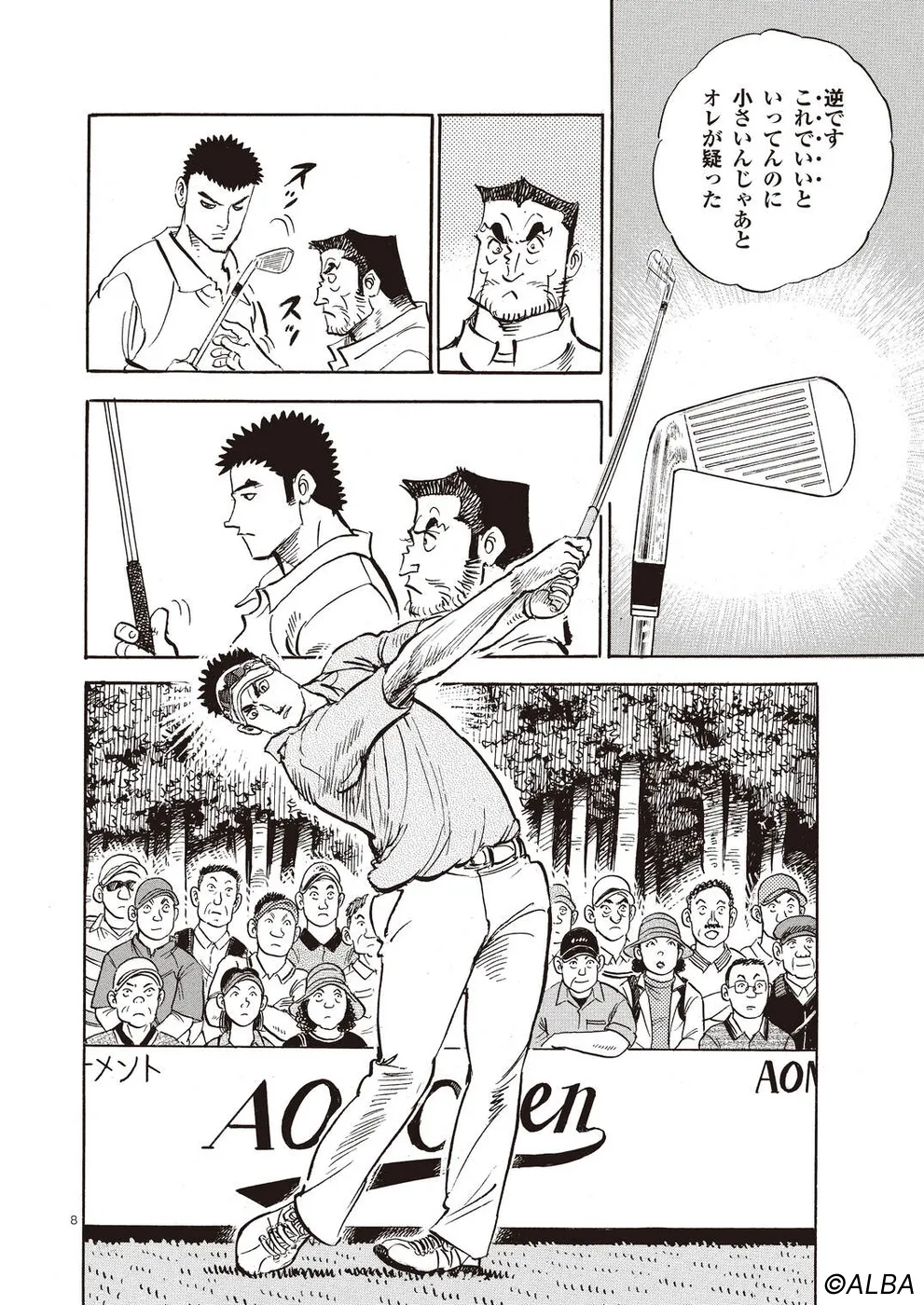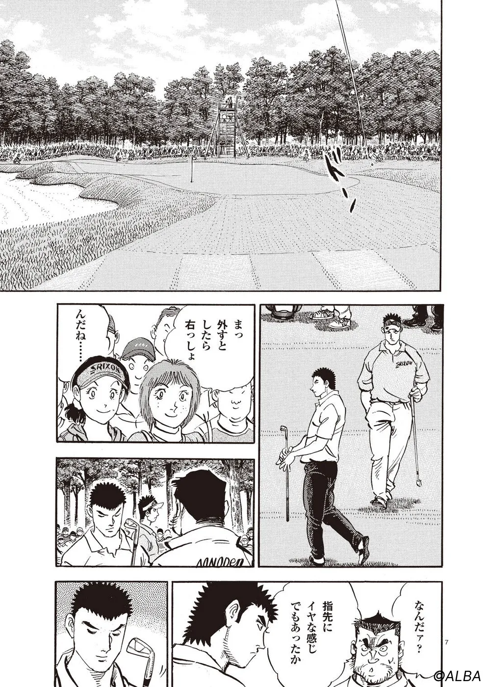 【第64巻あらすじ】スーパーアマチュア・松井英樹とのペアリングとなったAONオープン最終日。序盤から飛ばす二人は一進一退の攻防を繰り広げながらどんどんスコアを伸ばしていく。いつの間にか優勝争いに食い込んでいるのだが、お互いのプレーしか目に入っていないようなプレーが続く。