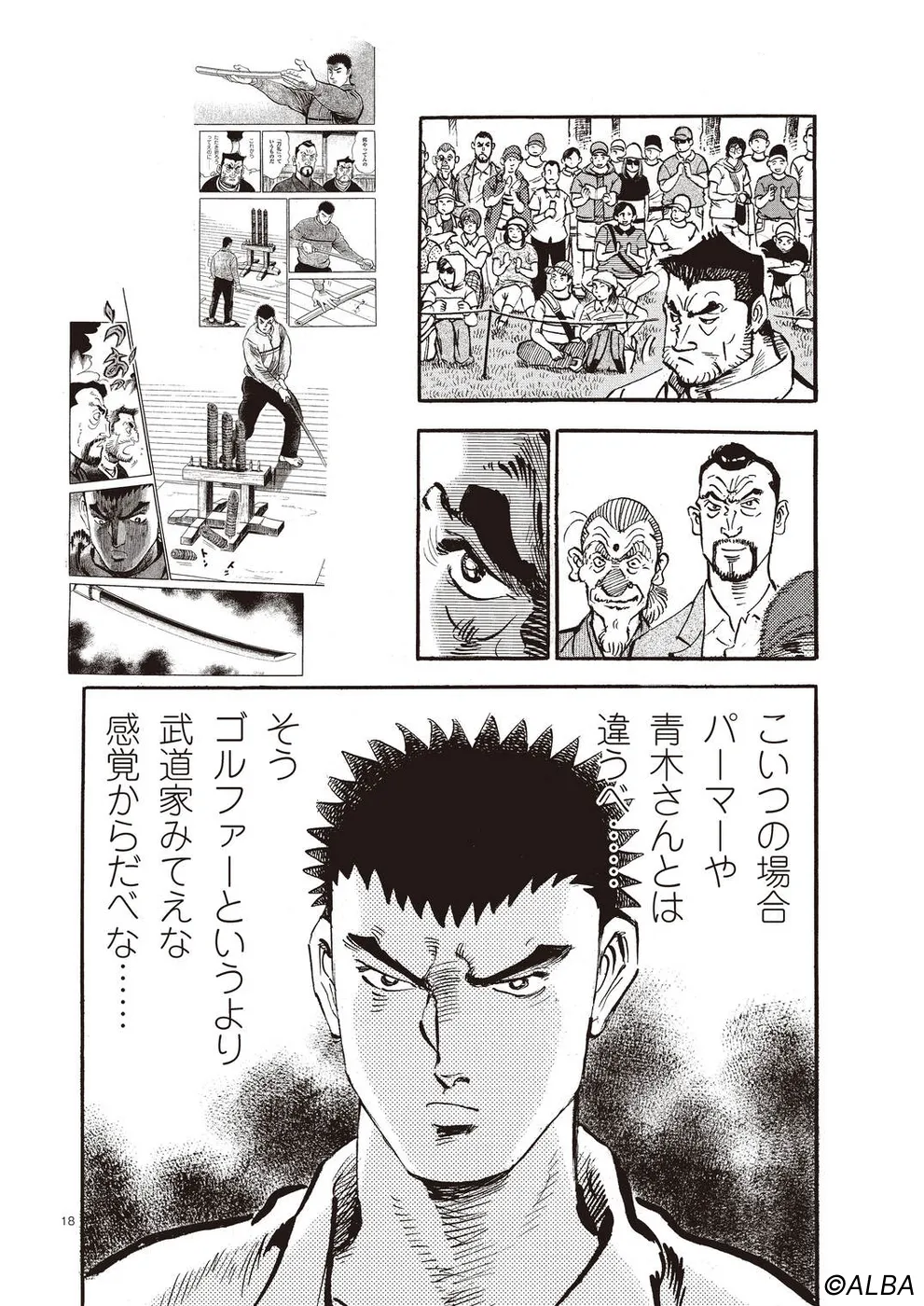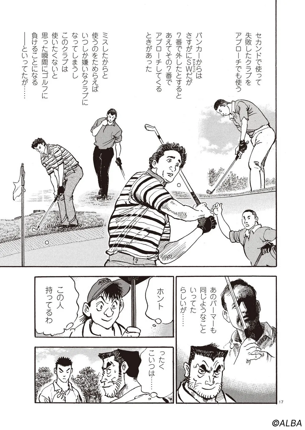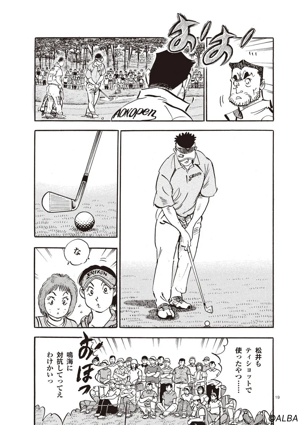 【第64巻あらすじ】スーパーアマチュア・松井英樹とのペアリングとなったAONオープン最終日。序盤から飛ばす二人は一進一退の攻防を繰り広げながらどんどんスコアを伸ばしていく。いつの間にか優勝争いに食い込んでいるのだが、お互いのプレーしか目に入っていないようなプレーが続く。