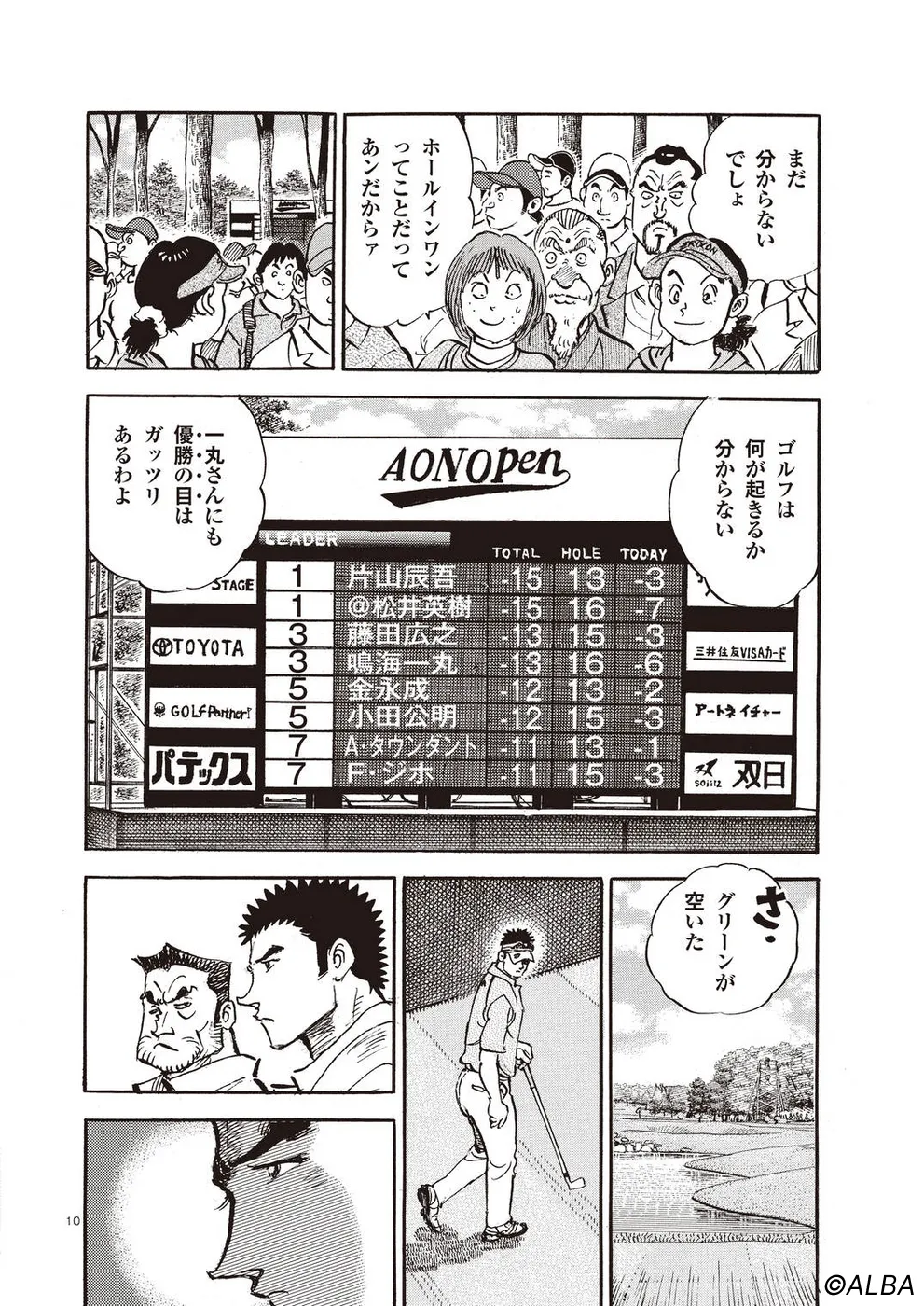【第65巻あらすじ】松井VS一丸の同組決戦もいよいよ終盤。お互いへの意識を隠すことなく、ぐんぐんスコアを伸ばしていき、いつの間にか優勝争いにも絡んでいく。しかし、松山が優勝すれば同一シーズンでアマチュア2勝となるので、それを阻止すべく、小田、片山らのトッププロもギア全開で追いかける!