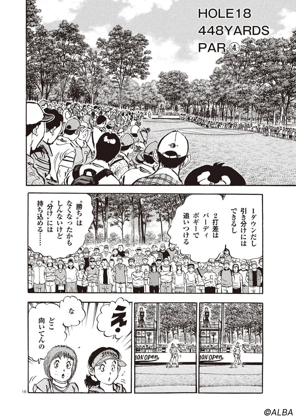 【第65巻あらすじ】松井VS一丸の同組決戦もいよいよ終盤。お互いへの意識を隠すことなく、ぐんぐんスコアを伸ばしていき、いつの間にか優勝争いにも絡んでいく。しかし、松山が優勝すれば同一シーズンでアマチュア2勝となるので、それを阻止すべく、小田、片山らのトッププロもギア全開で追いかける!