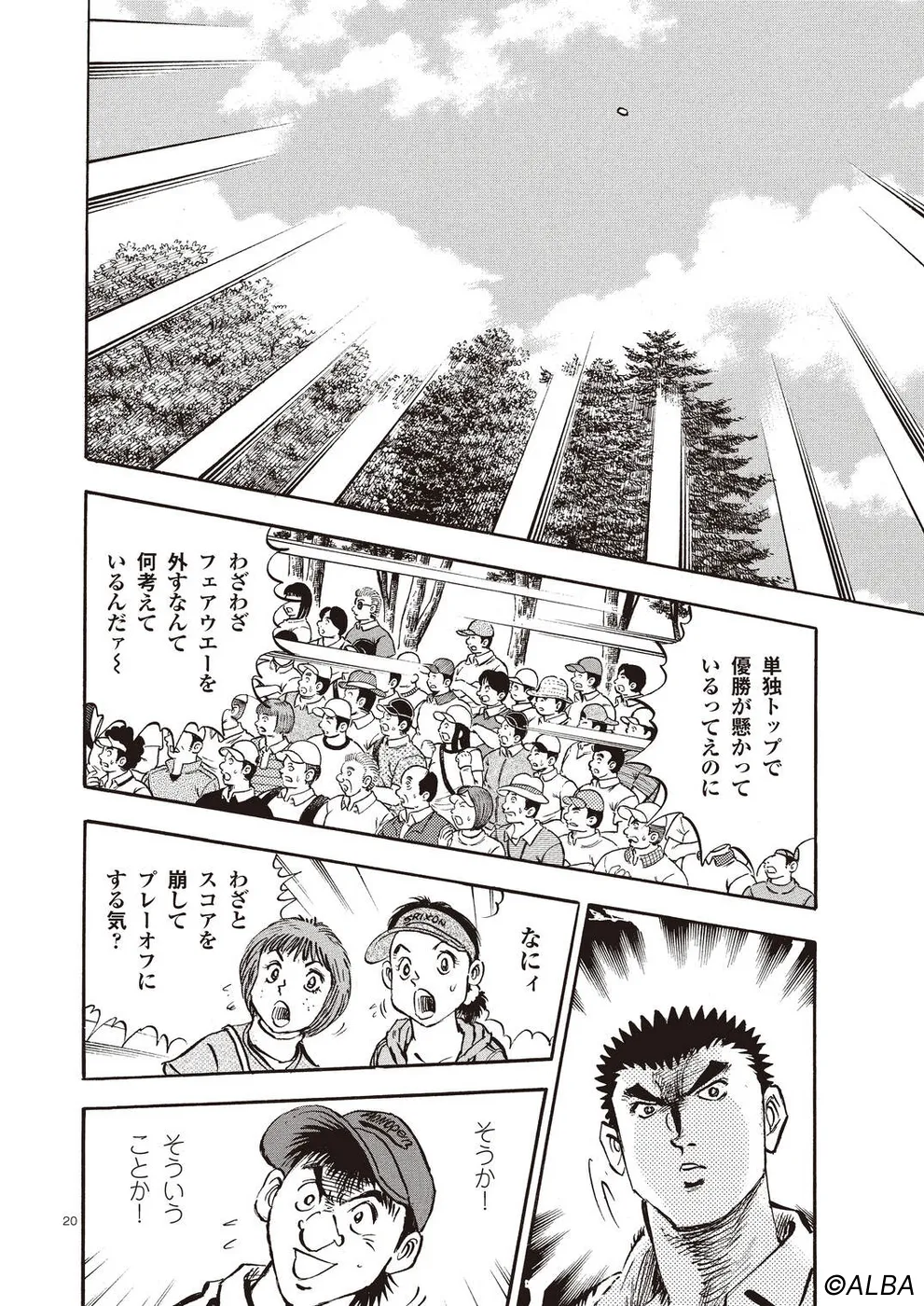 【第65巻あらすじ】松井VS一丸の同組決戦もいよいよ終盤。お互いへの意識を隠すことなく、ぐんぐんスコアを伸ばしていき、いつの間にか優勝争いにも絡んでいく。しかし、松山が優勝すれば同一シーズンでアマチュア2勝となるので、それを阻止すべく、小田、片山らのトッププロもギア全開で追いかける!