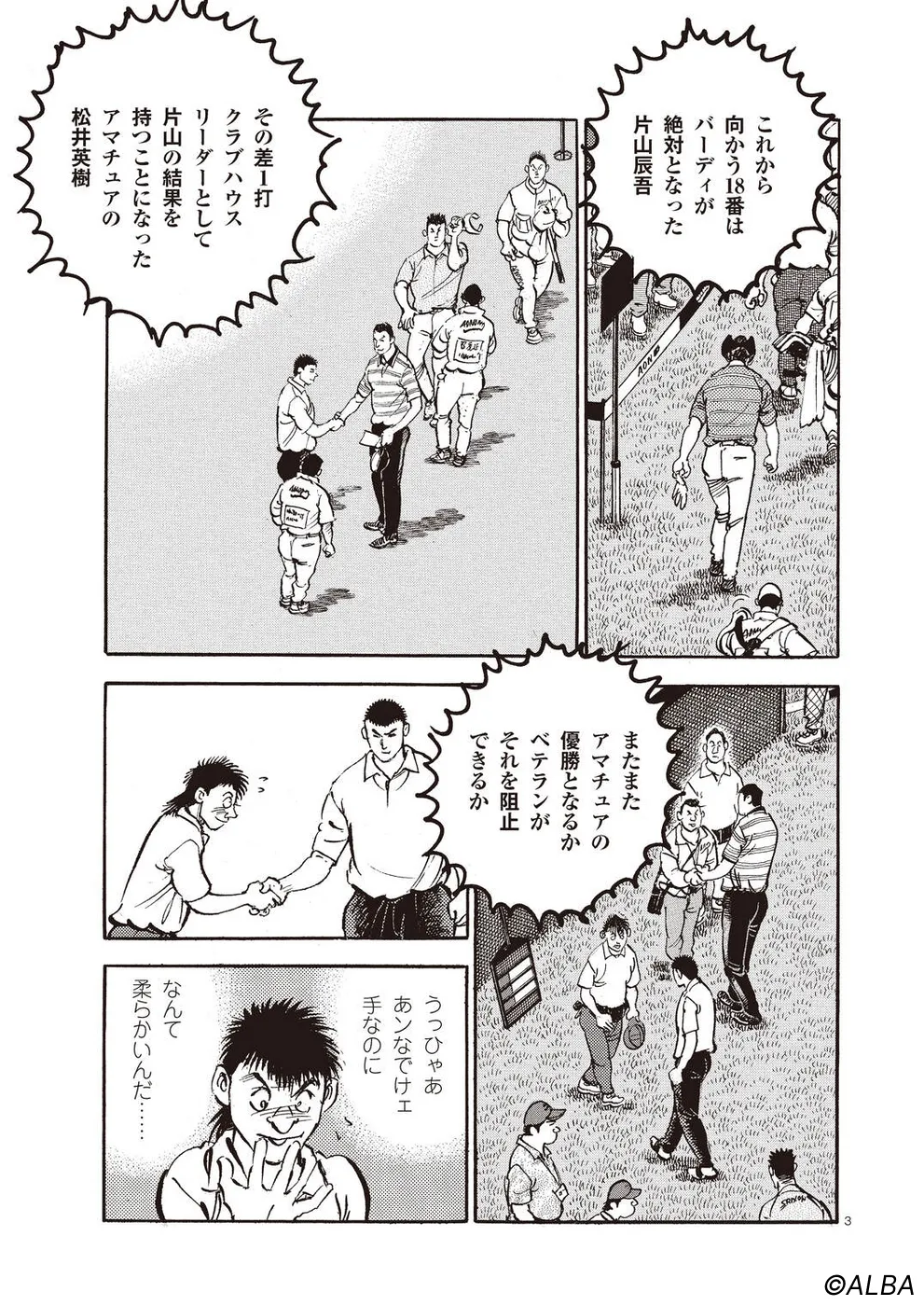 【第66巻あらすじ】最強アマ、松井英樹との戦いはいよいよクライマックスに。お互いのプライドをかけた勝負は最終18番で思いもよらないドラマを生む。しかし、ミズオオープンが終了すると、一丸は予選も通過できないほどのスランプに。その原因を探るべく、長年戻っていなかった実家へと帰る。そこで待っていた人物とは!?