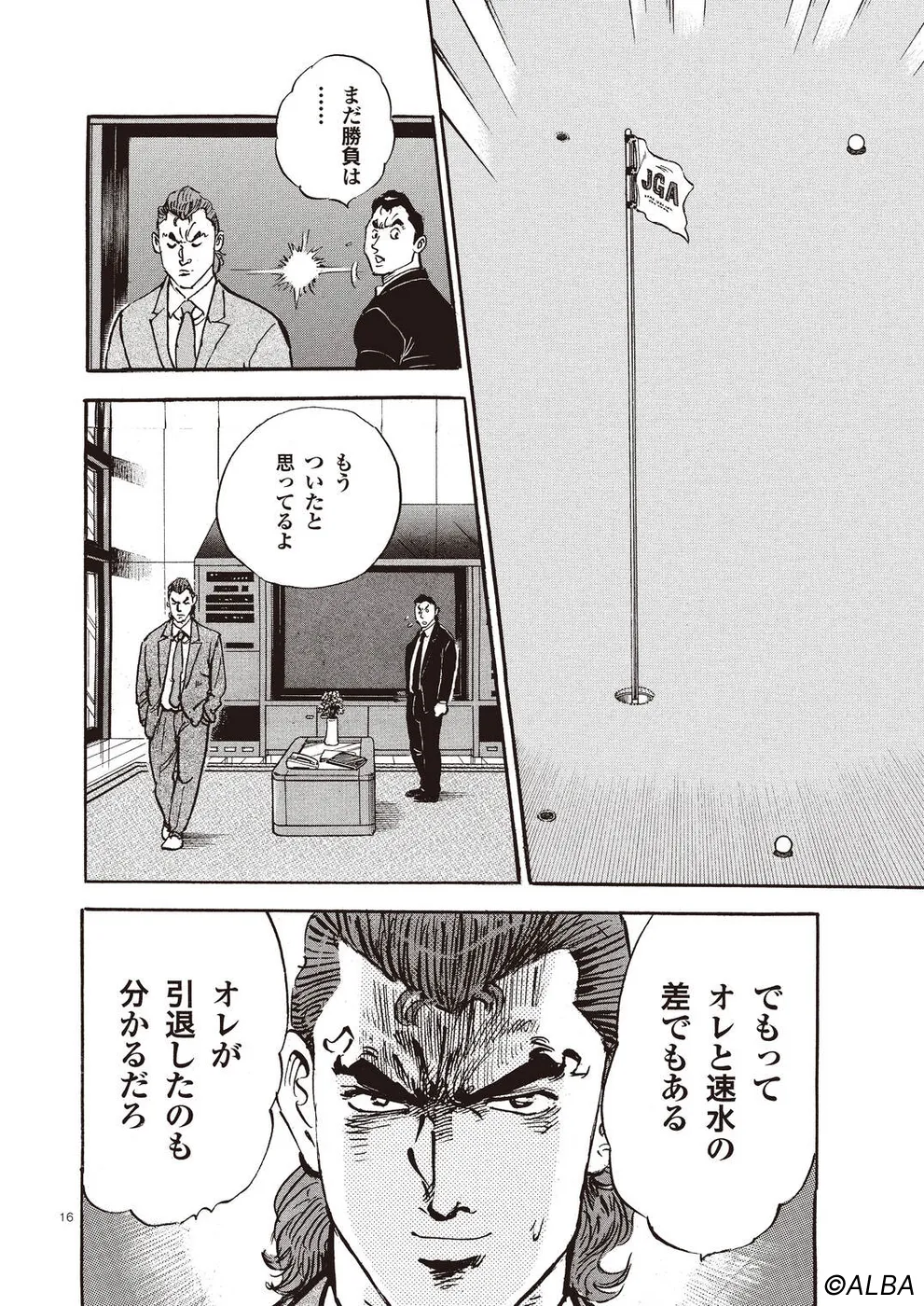 【第66巻あらすじ】最強アマ、松井英樹との戦いはいよいよクライマックスに。お互いのプライドをかけた勝負は最終18番で思いもよらないドラマを生む。しかし、ミズオオープンが終了すると、一丸は予選も通過できないほどのスランプに。その原因を探るべく、長年戻っていなかった実家へと帰る。そこで待っていた人物とは!?