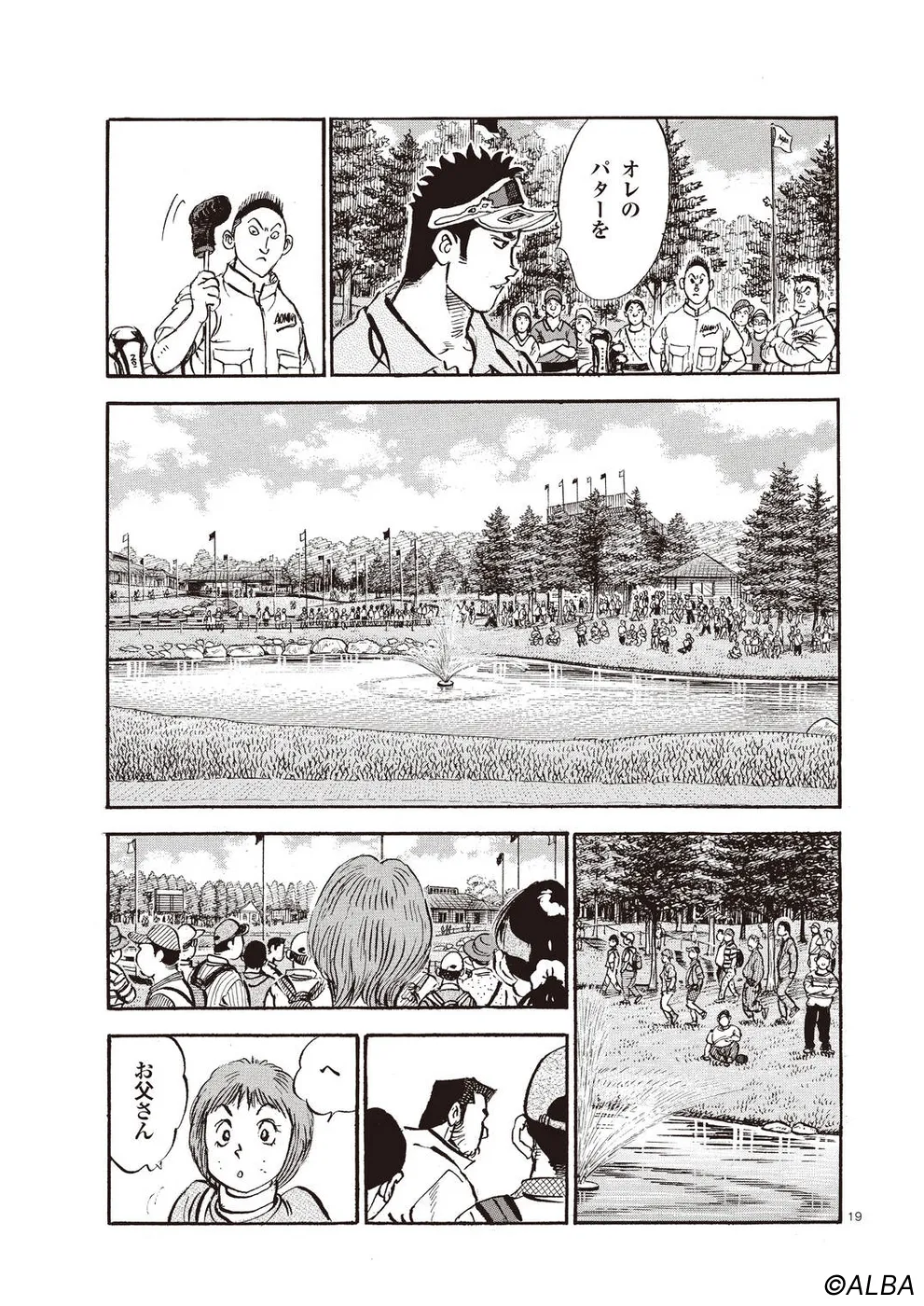 【第66巻あらすじ】最強アマ、松井英樹との戦いはいよいよクライマックスに。お互いのプライドをかけた勝負は最終18番で思いもよらないドラマを生む。しかし、ミズオオープンが終了すると、一丸は予選も通過できないほどのスランプに。その原因を探るべく、長年戻っていなかった実家へと帰る。そこで待っていた人物とは!?