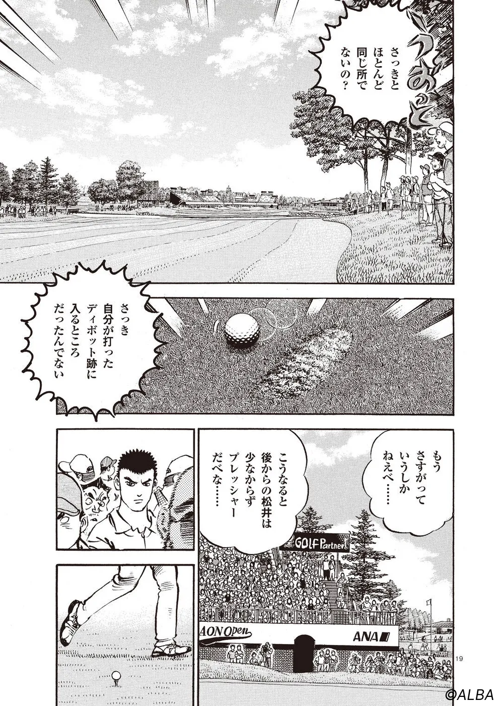 【第66巻あらすじ】最強アマ、松井英樹との戦いはいよいよクライマックスに。お互いのプライドをかけた勝負は最終18番で思いもよらないドラマを生む。しかし、ミズオオープンが終了すると、一丸は予選も通過できないほどのスランプに。その原因を探るべく、長年戻っていなかった実家へと帰る。そこで待っていた人物とは!?