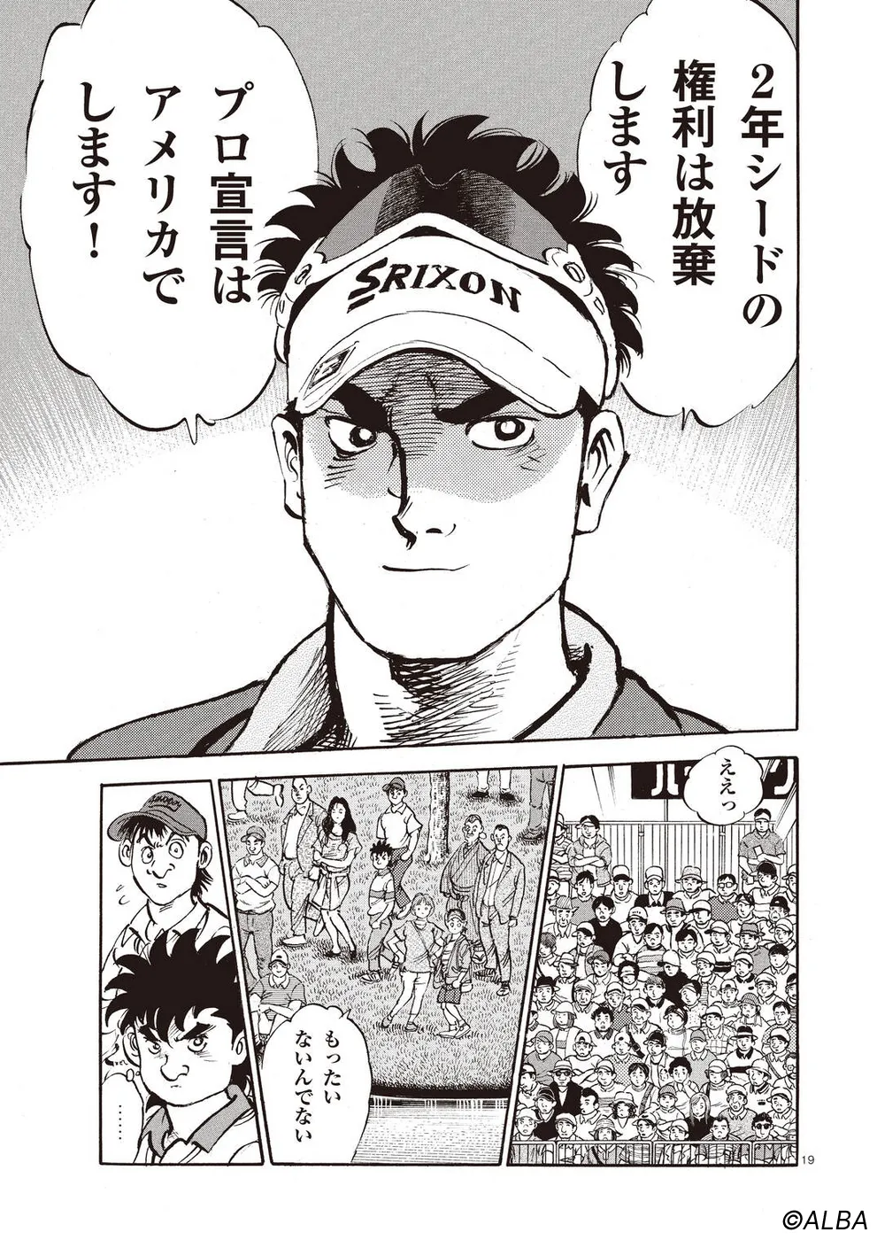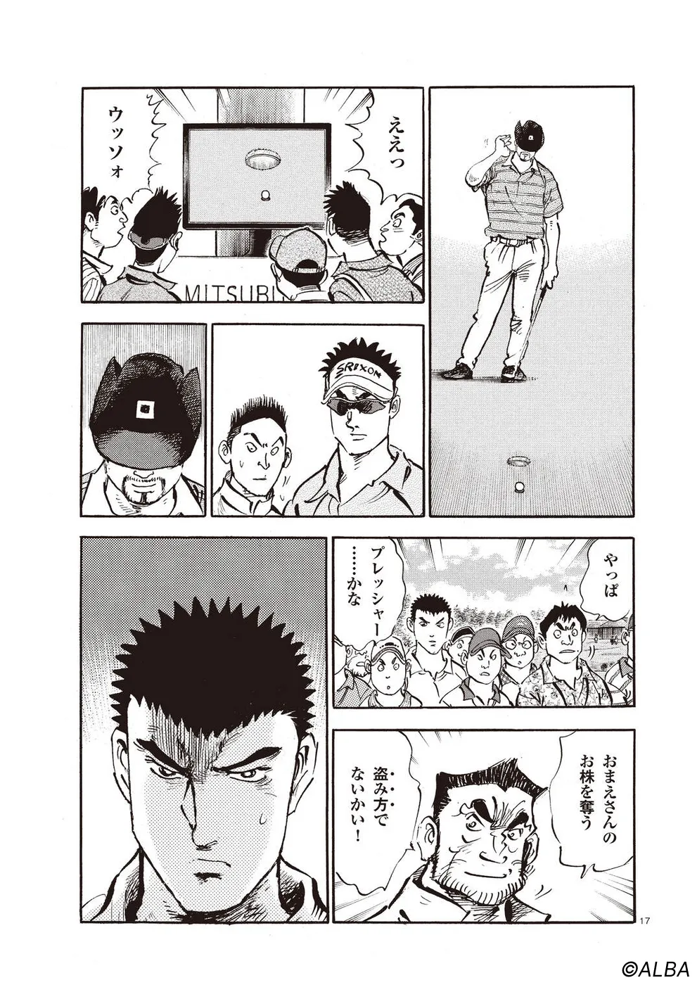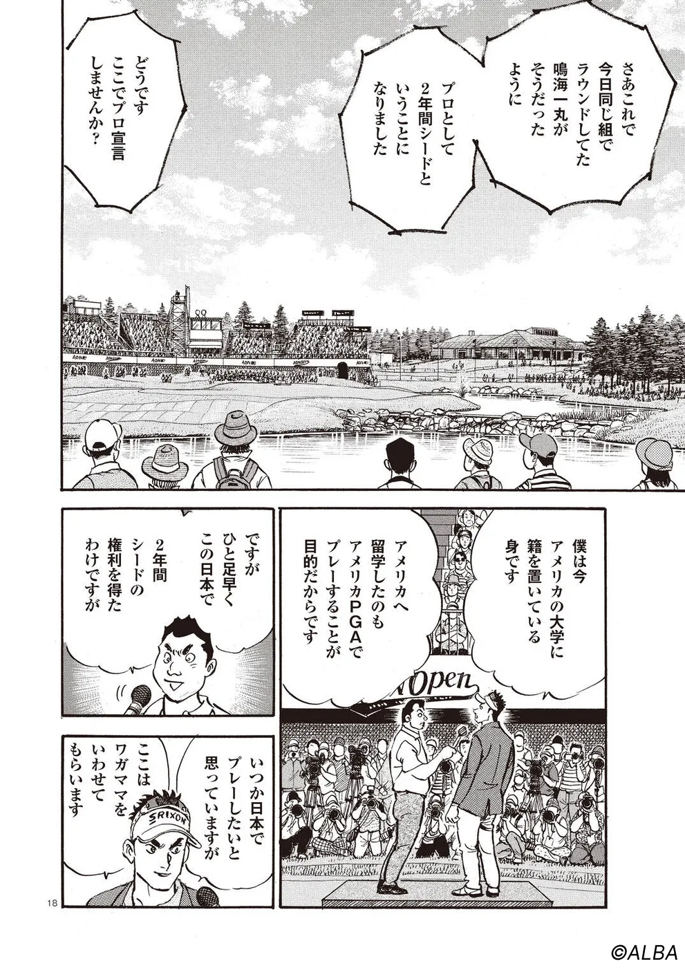 【第66巻あらすじ】最強アマ、松井英樹との戦いはいよいよクライマックスに。お互いのプライドをかけた勝負は最終18番で思いもよらないドラマを生む。しかし、ミズオオープンが終了すると、一丸は予選も通過できないほどのスランプに。その原因を探るべく、長年戻っていなかった実家へと帰る。そこで待っていた人物とは!?