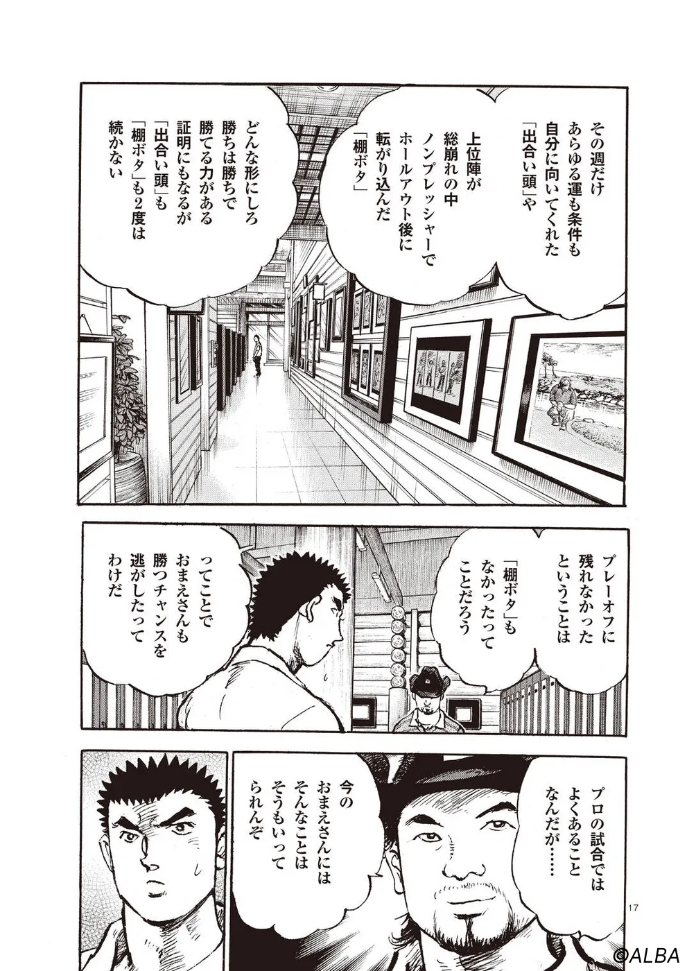 【第66巻あらすじ】最強アマ、松井英樹との戦いはいよいよクライマックスに。お互いのプライドをかけた勝負は最終18番で思いもよらないドラマを生む。しかし、ミズオオープンが終了すると、一丸は予選も通過できないほどのスランプに。その原因を探るべく、長年戻っていなかった実家へと帰る。そこで待っていた人物とは!?
