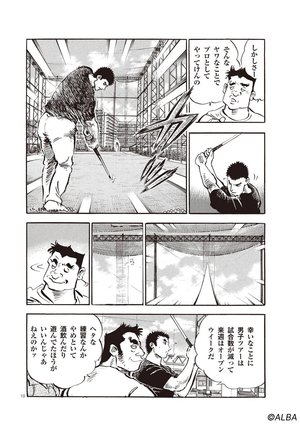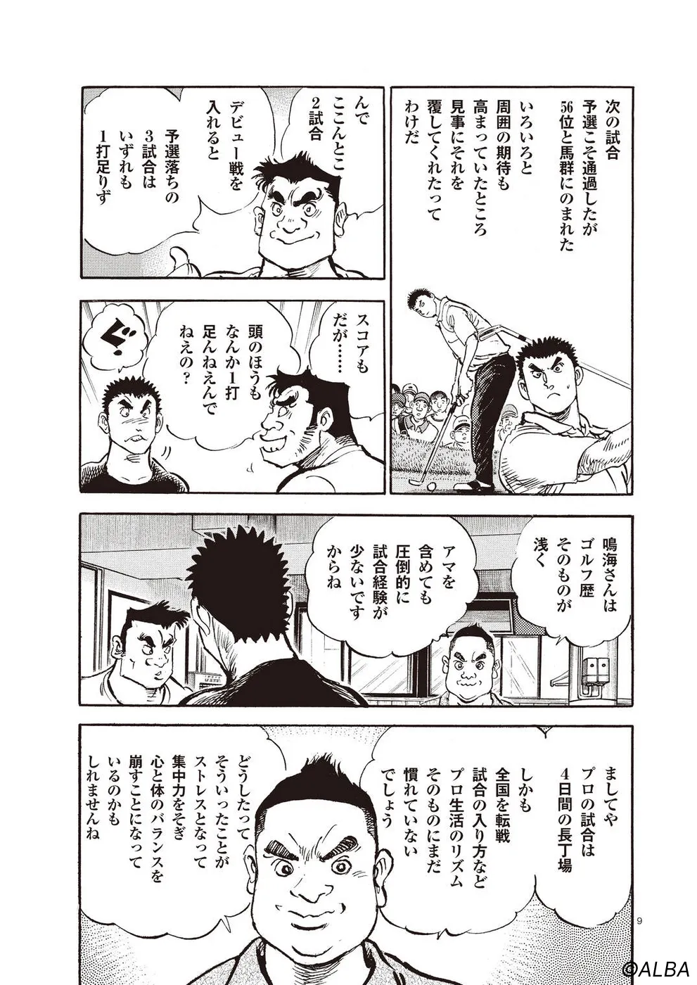 【第66巻あらすじ】最強アマ、松井英樹との戦いはいよいよクライマックスに。お互いのプライドをかけた勝負は最終18番で思いもよらないドラマを生む。しかし、ミズオオープンが終了すると、一丸は予選も通過できないほどのスランプに。その原因を探るべく、長年戻っていなかった実家へと帰る。そこで待っていた人物とは!?