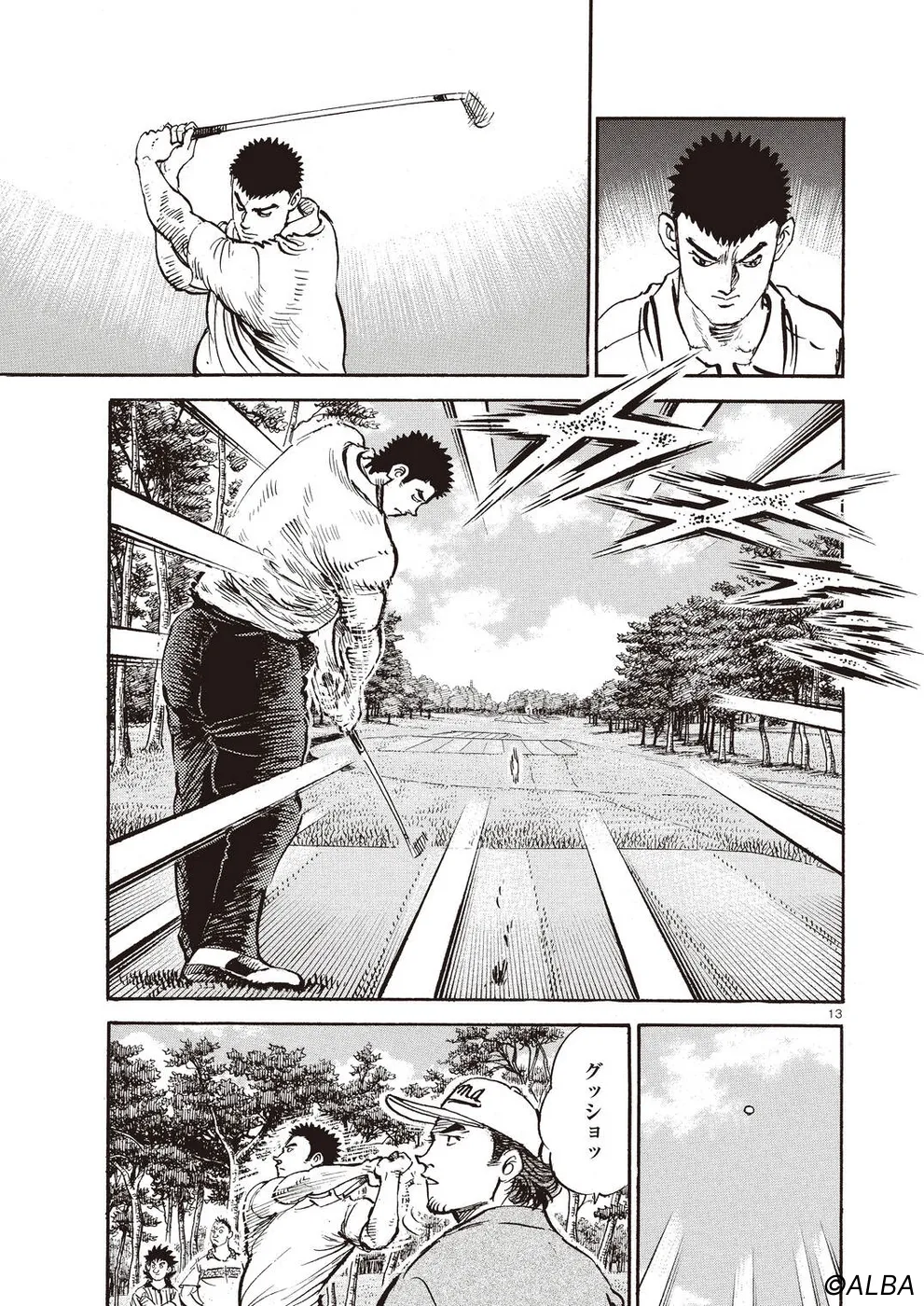 【第67巻あらすじ】プロゴルファーとしての覚悟が足りなかったのかもしれない。そんな思いに揺れ動く一丸の前に、一人の男が現れる。世界ランクトップ10に入るリッキー・ハウラーだ。そして刀鍛冶時代に一丸が作刀した1本を譲ってほしいという。その頼みを断った一丸に、リッキーはゴルフでの勝負を持ちかける。刀を懸けた二人のプライバーとマッチの行方は?