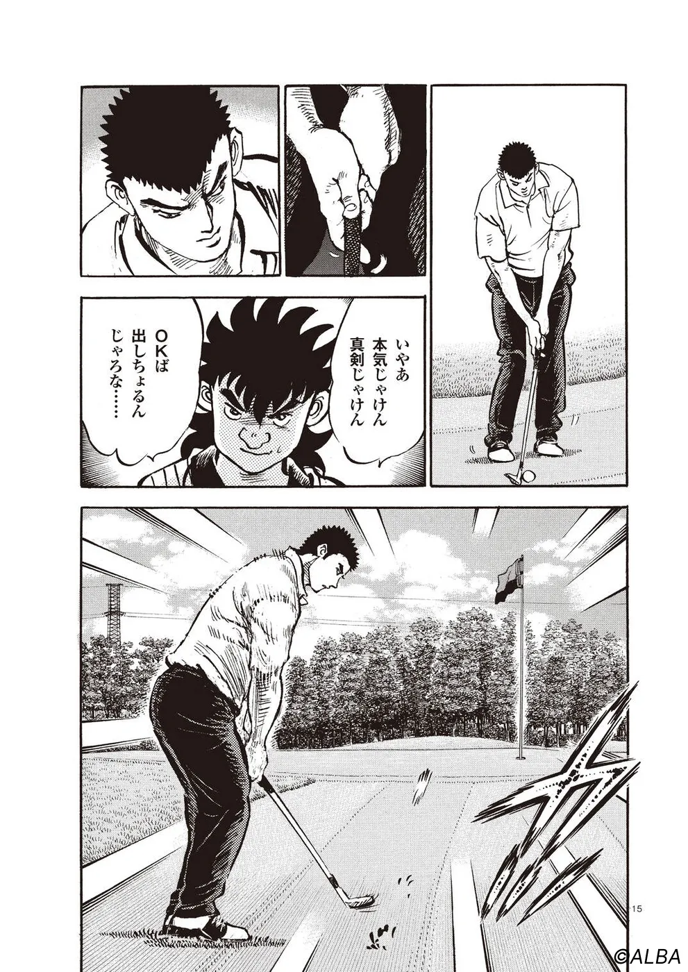 【第67巻あらすじ】プロゴルファーとしての覚悟が足りなかったのかもしれない。そんな思いに揺れ動く一丸の前に、一人の男が現れる。世界ランクトップ10に入るリッキー・ハウラーだ。そして刀鍛冶時代に一丸が作刀した1本を譲ってほしいという。その頼みを断った一丸に、リッキーはゴルフでの勝負を持ちかける。刀を懸けた二人のプライバーとマッチの行方は?