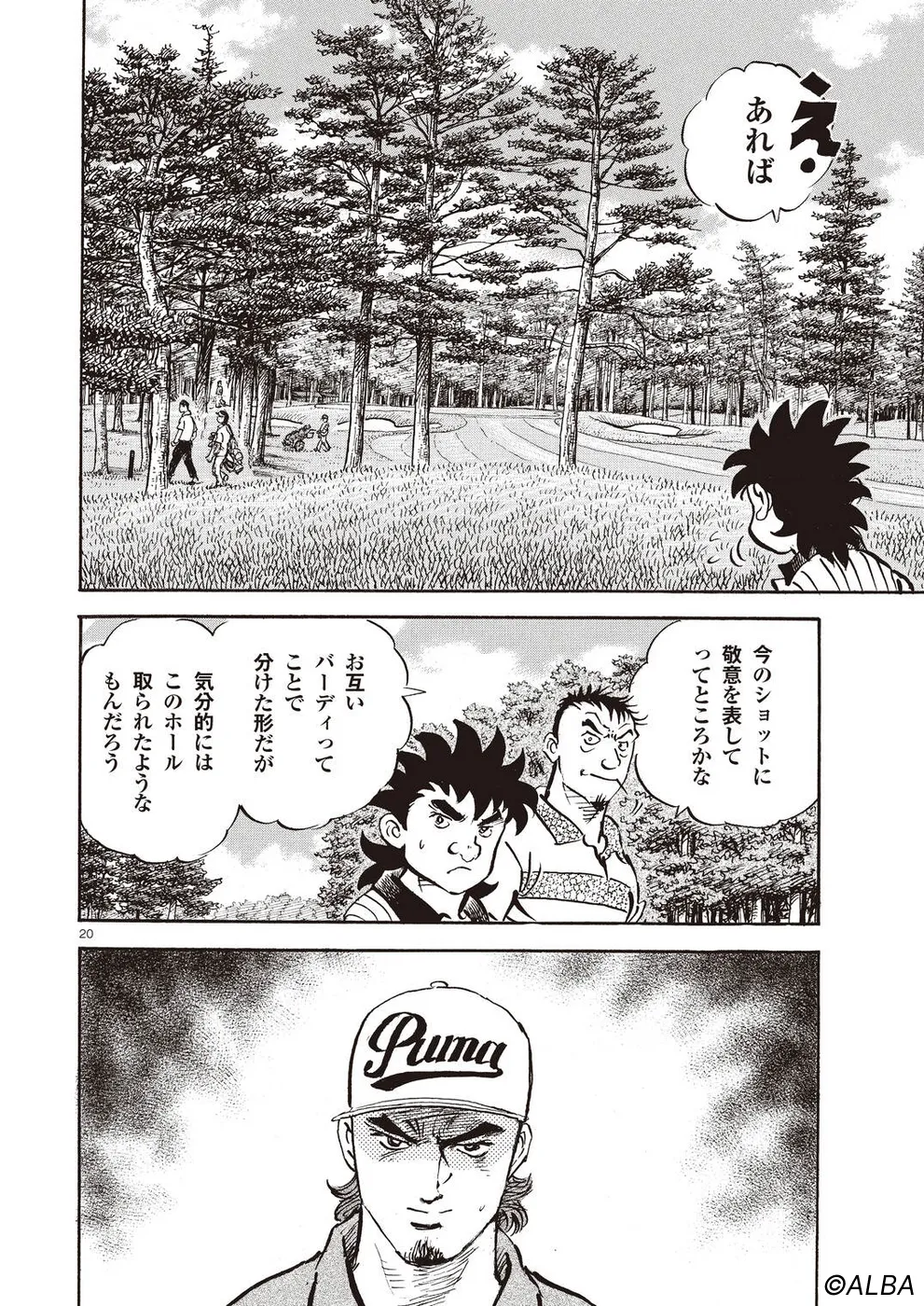 【第67巻あらすじ】プロゴルファーとしての覚悟が足りなかったのかもしれない。そんな思いに揺れ動く一丸の前に、一人の男が現れる。世界ランクトップ10に入るリッキー・ハウラーだ。そして刀鍛冶時代に一丸が作刀した1本を譲ってほしいという。その頼みを断った一丸に、リッキーはゴルフでの勝負を持ちかける。刀を懸けた二人のプライバーとマッチの行方は?