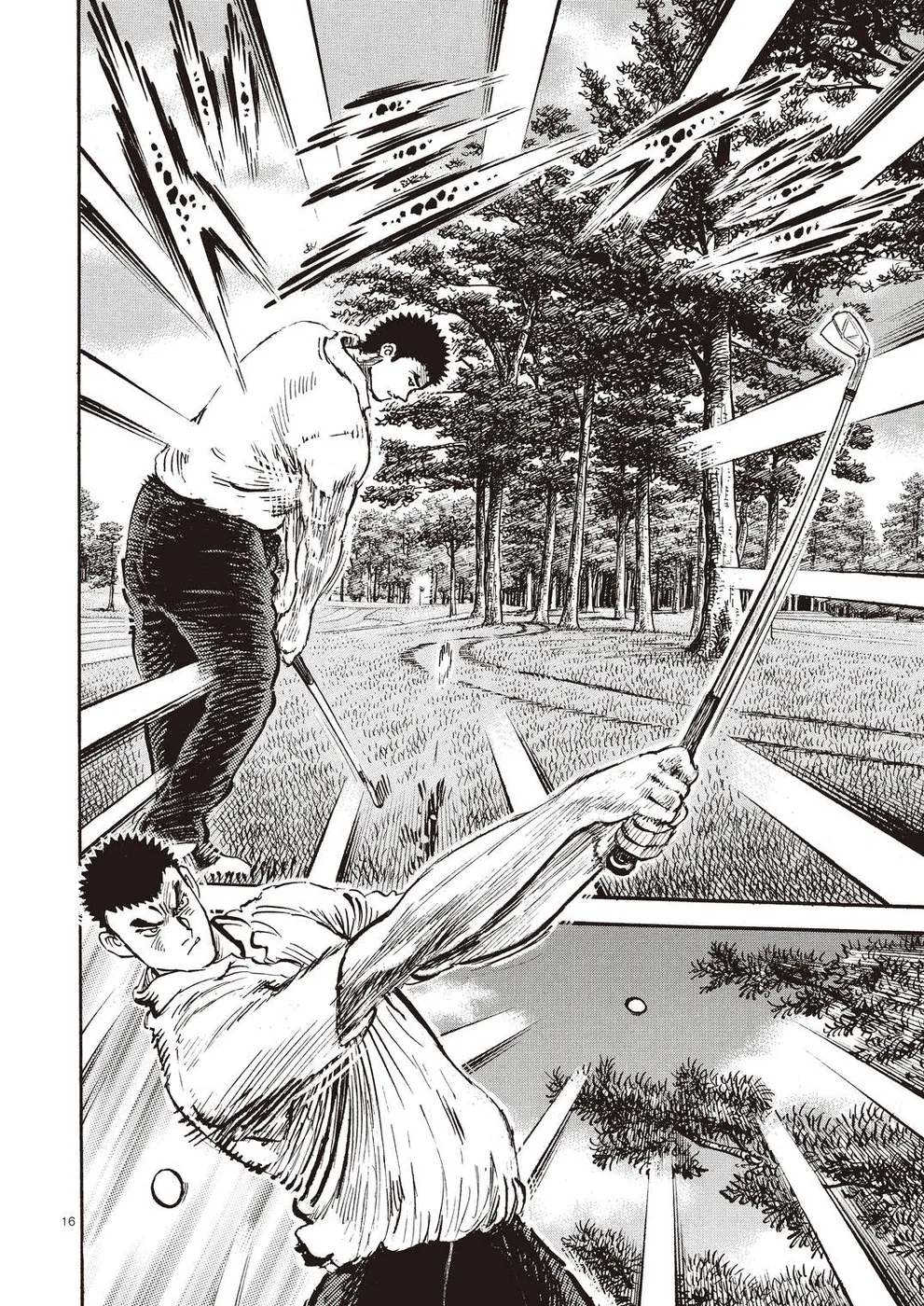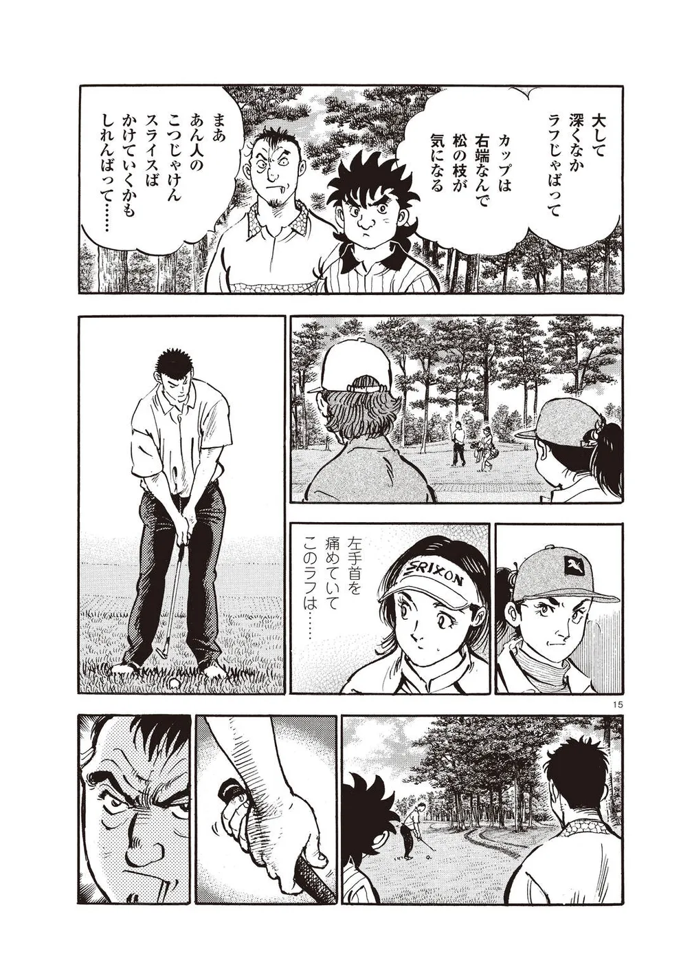 【第68巻あらすじ】刀鍛冶時代に作刀した1本を懸けて、世界ランクトップ10に入るリッキー・ハウラーとマッチプレーを戦うことになった鳴海一丸。さまざまな駆け引きが行われる中、戦いは8番ホールに入って一丸のワンダウン。互角の勝負を続けていたが、7番ホールのセカンドショットで痛めた左手首が、一丸のスイングに影響を与え始めていた…。