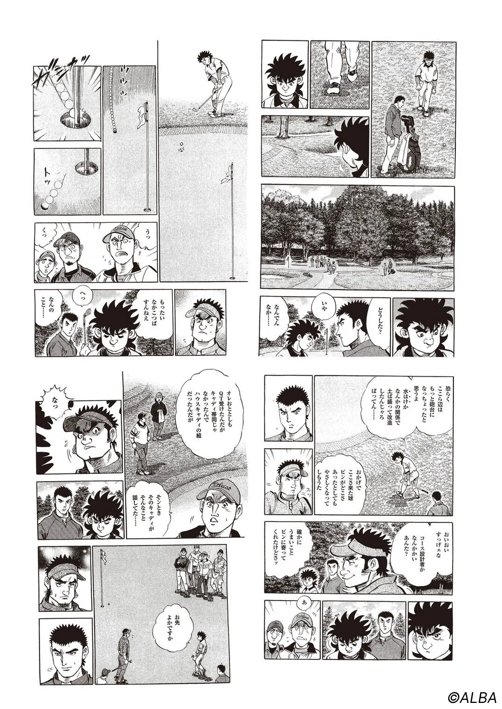 【第68巻あらすじ】刀鍛冶時代に作刀した1本を懸けて、世界ランクトップ10に入るリッキー・ハウラーとマッチプレーを戦うことになった鳴海一丸。さまざまな駆け引きが行われる中、戦いは8番ホールに入って一丸のワンダウン。互角の勝負を続けていたが、7番ホールのセカンドショットで痛めた左手首が、一丸のスイングに影響を与え始めていた…。