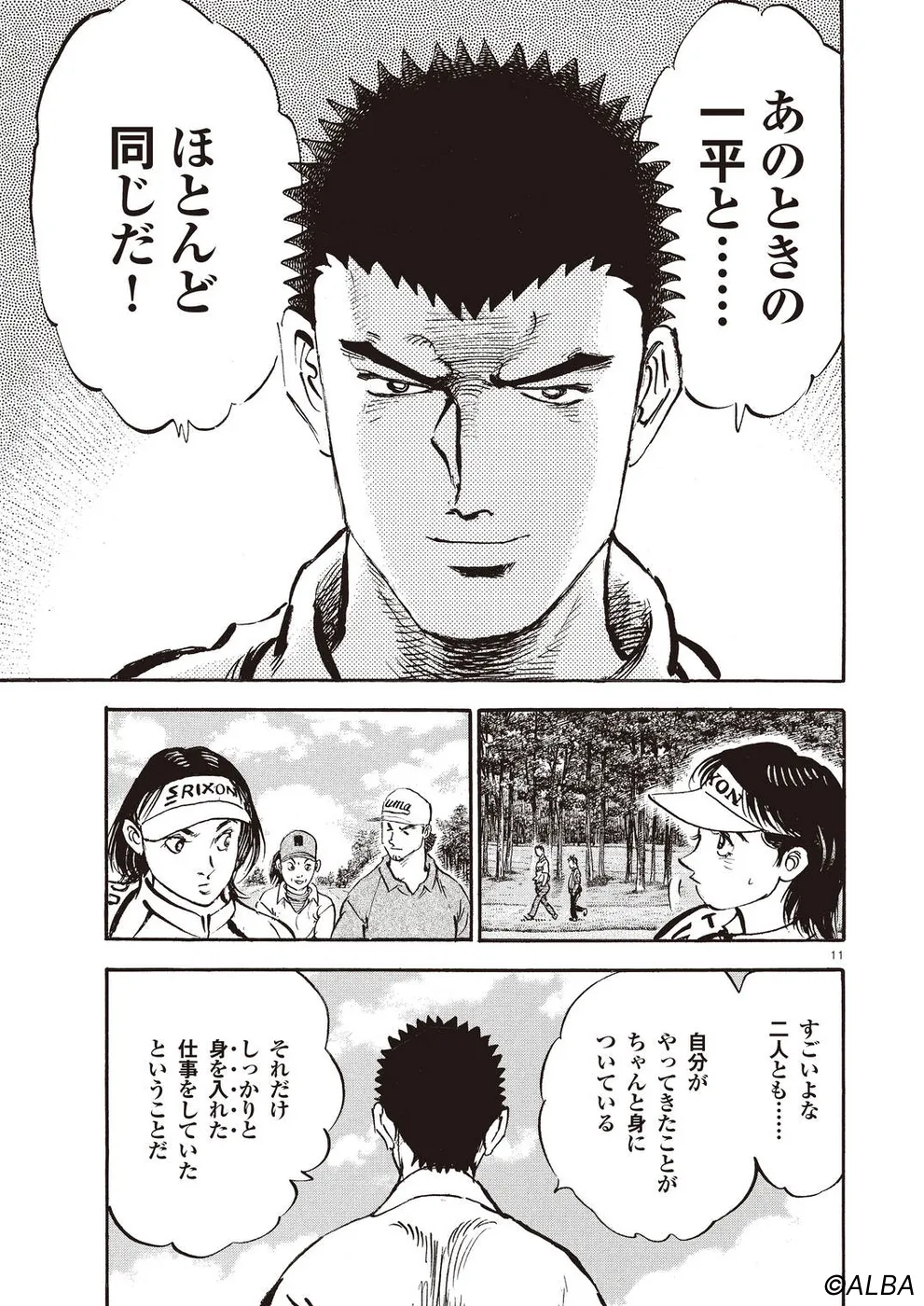 【第68巻あらすじ】刀鍛冶時代に作刀した1本を懸けて、世界ランクトップ10に入るリッキー・ハウラーとマッチプレーを戦うことになった鳴海一丸。さまざまな駆け引きが行われる中、戦いは8番ホールに入って一丸のワンダウン。互角の勝負を続けていたが、7番ホールのセカンドショットで痛めた左手首が、一丸のスイングに影響を与え始めていた…。