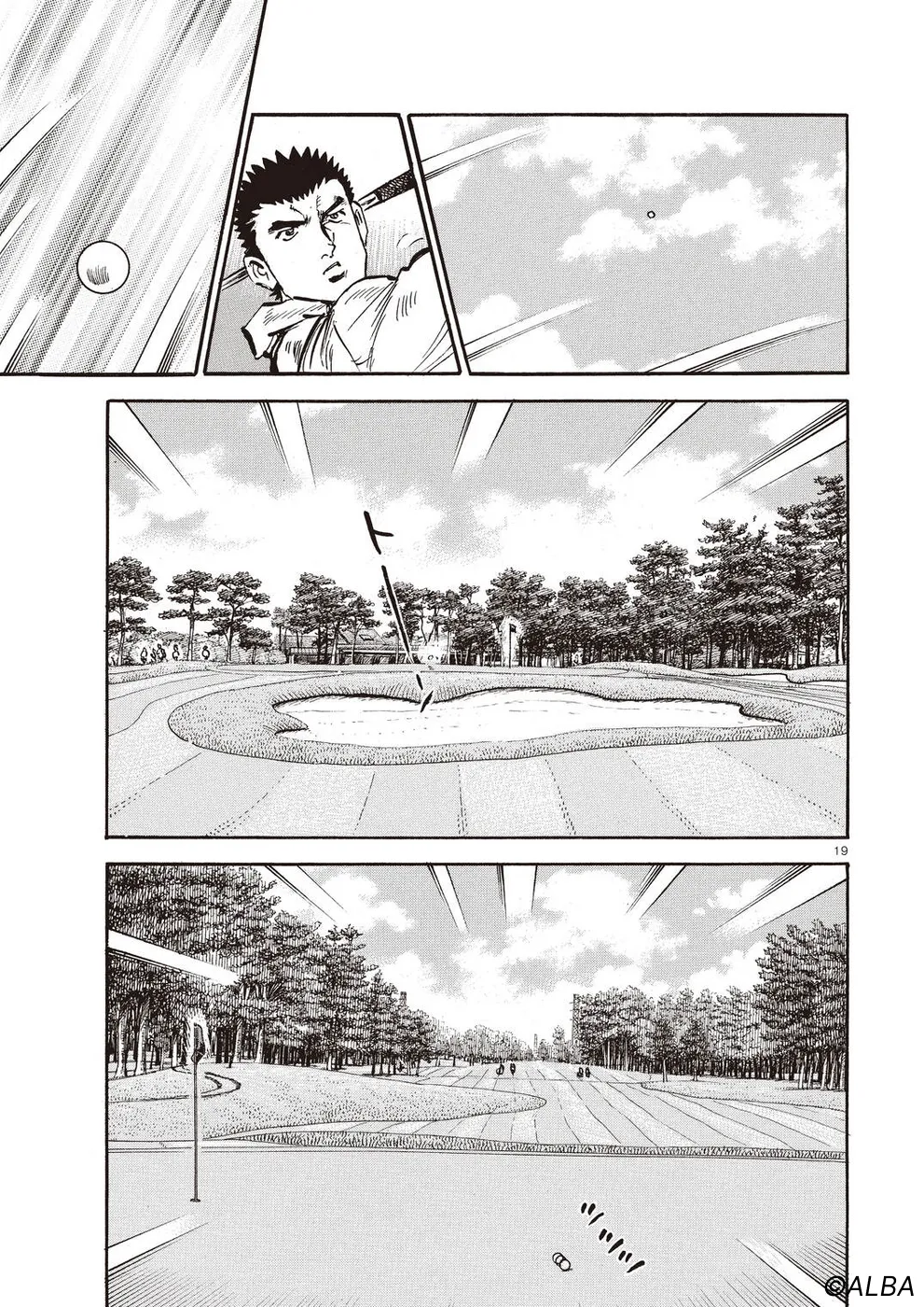 【第68巻あらすじ】刀鍛冶時代に作刀した1本を懸けて、世界ランクトップ10に入るリッキー・ハウラーとマッチプレーを戦うことになった鳴海一丸。さまざまな駆け引きが行われる中、戦いは8番ホールに入って一丸のワンダウン。互角の勝負を続けていたが、7番ホールのセカンドショットで痛めた左手首が、一丸のスイングに影響を与え始めていた…。