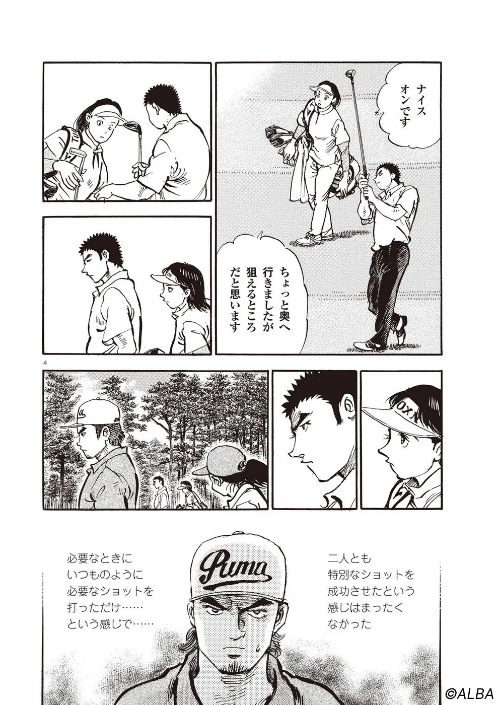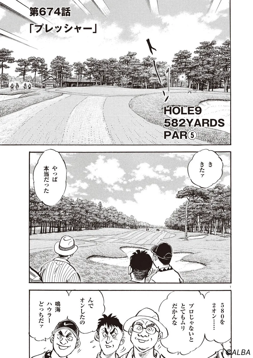 【第68巻あらすじ】刀鍛冶時代に作刀した1本を懸けて、世界ランクトップ10に入るリッキー・ハウラーとマッチプレーを戦うことになった鳴海一丸。さまざまな駆け引きが行われる中、戦いは8番ホールに入って一丸のワンダウン。互角の勝負を続けていたが、7番ホールのセカンドショットで痛めた左手首が、一丸のスイングに影響を与え始めていた…。