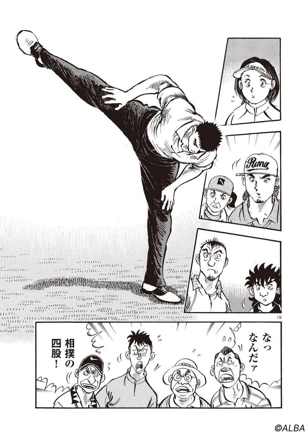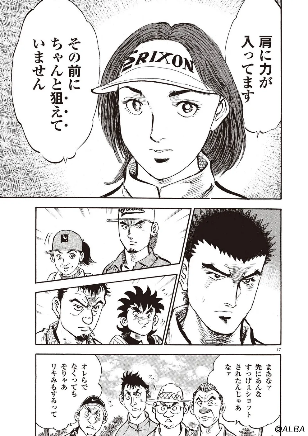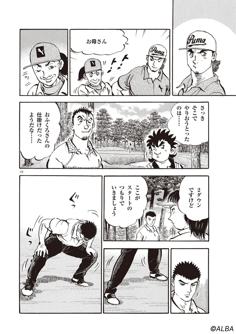 【第68巻あらすじ】刀鍛冶時代に作刀した1本を懸けて、世界ランクトップ10に入るリッキー・ハウラーとマッチプレーを戦うことになった鳴海一丸。さまざまな駆け引きが行われる中、戦いは8番ホールに入って一丸のワンダウン。互角の勝負を続けていたが、7番ホールのセカンドショットで痛めた左手首が、一丸のスイングに影響を与え始めていた…。