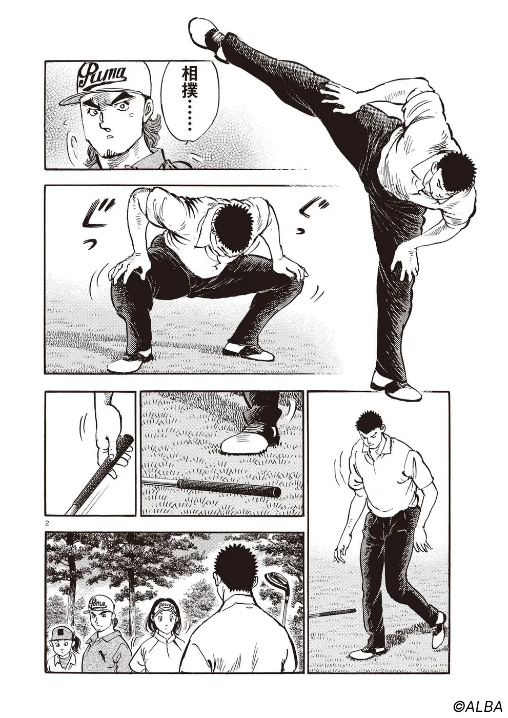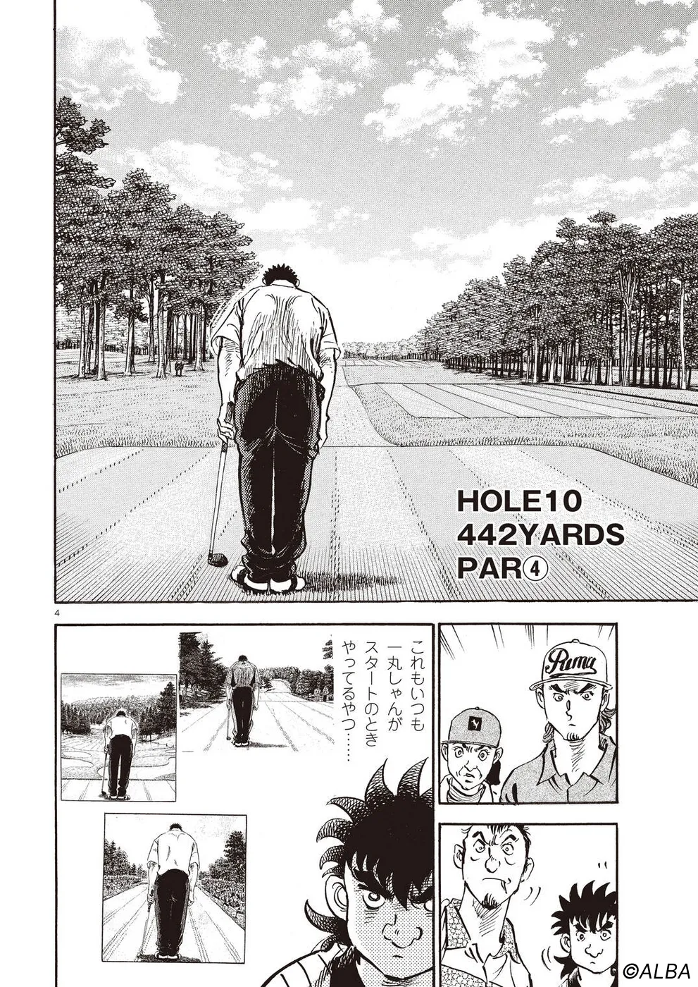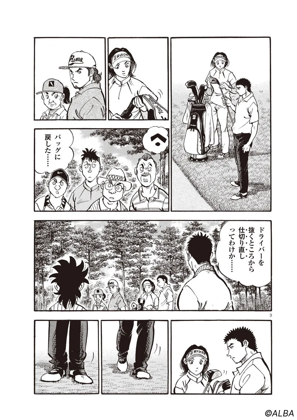 【第68巻あらすじ】刀鍛冶時代に作刀した1本を懸けて、世界ランクトップ10に入るリッキー・ハウラーとマッチプレーを戦うことになった鳴海一丸。さまざまな駆け引きが行われる中、戦いは8番ホールに入って一丸のワンダウン。互角の勝負を続けていたが、7番ホールのセカンドショットで痛めた左手首が、一丸のスイングに影響を与え始めていた…。