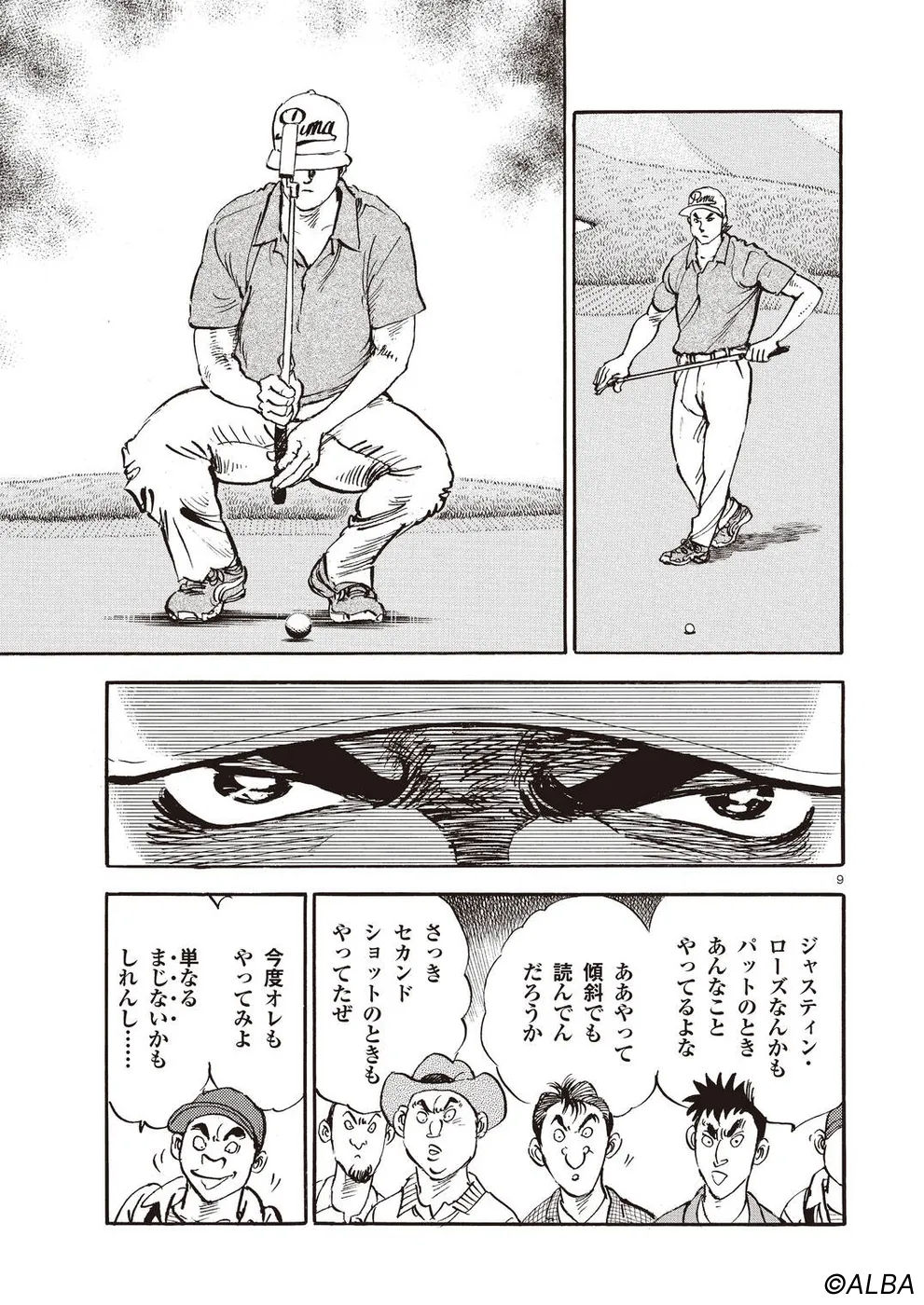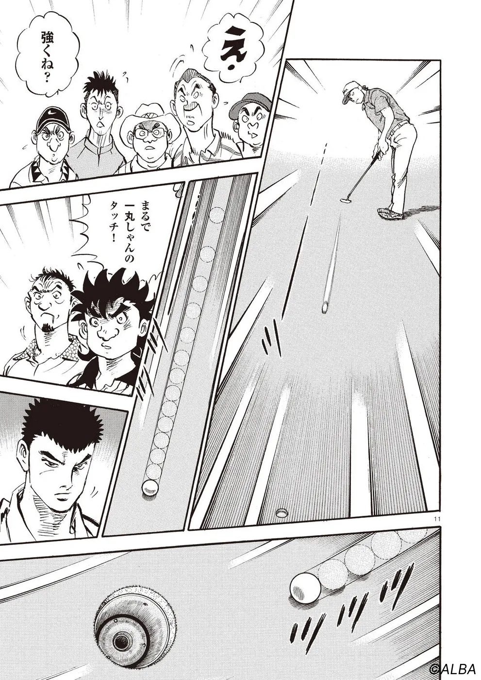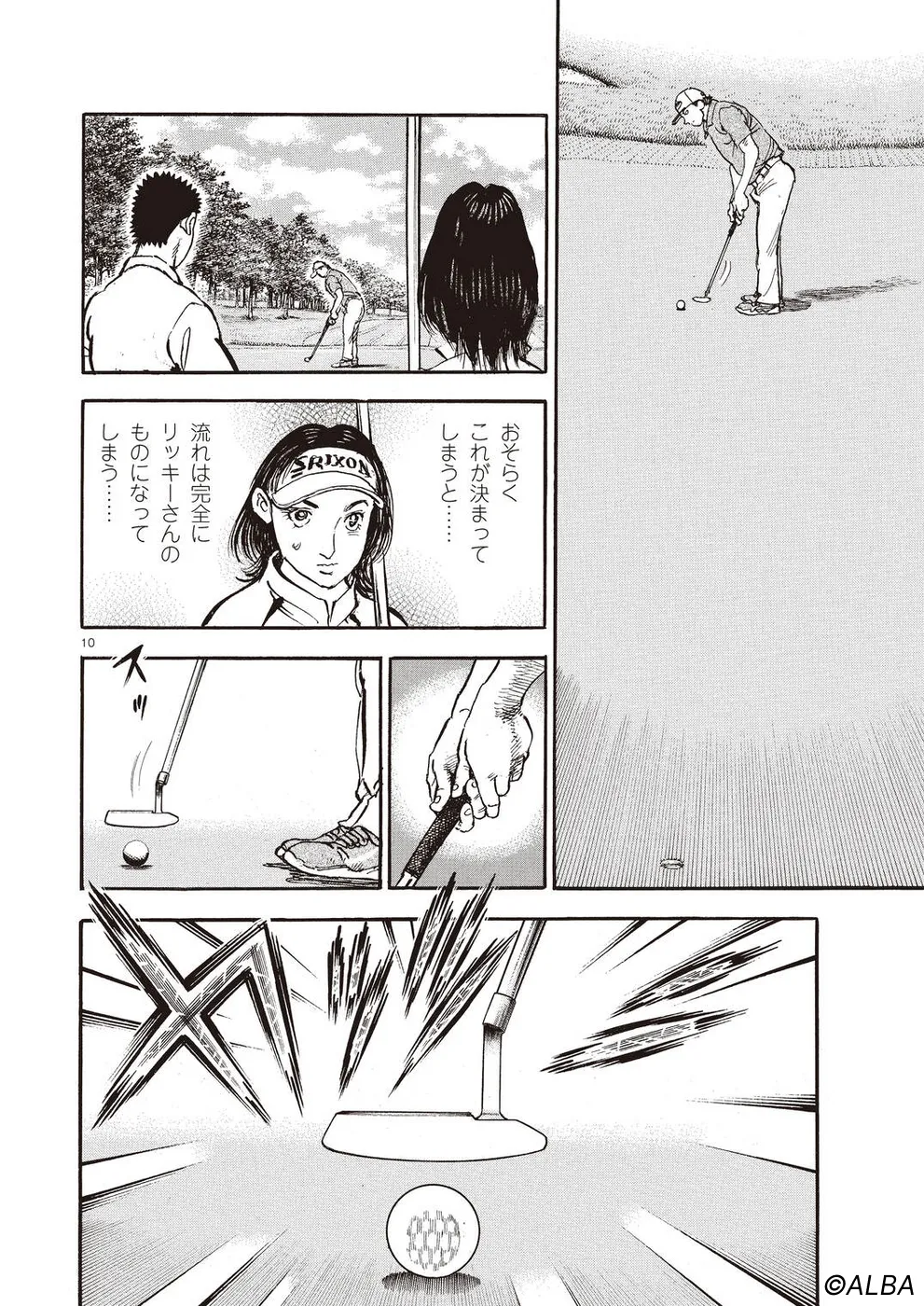 【第68巻あらすじ】刀鍛冶時代に作刀した1本を懸けて、世界ランクトップ10に入るリッキー・ハウラーとマッチプレーを戦うことになった鳴海一丸。さまざまな駆け引きが行われる中、戦いは8番ホールに入って一丸のワンダウン。互角の勝負を続けていたが、7番ホールのセカンドショットで痛めた左手首が、一丸のスイングに影響を与え始めていた…。