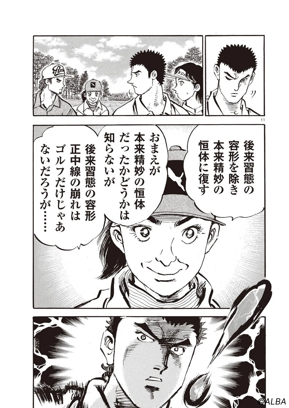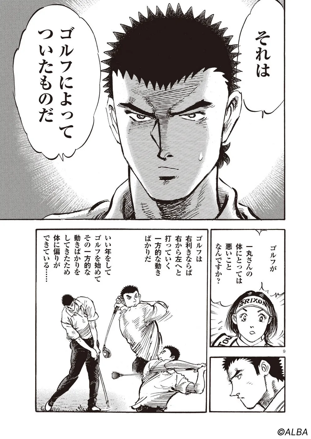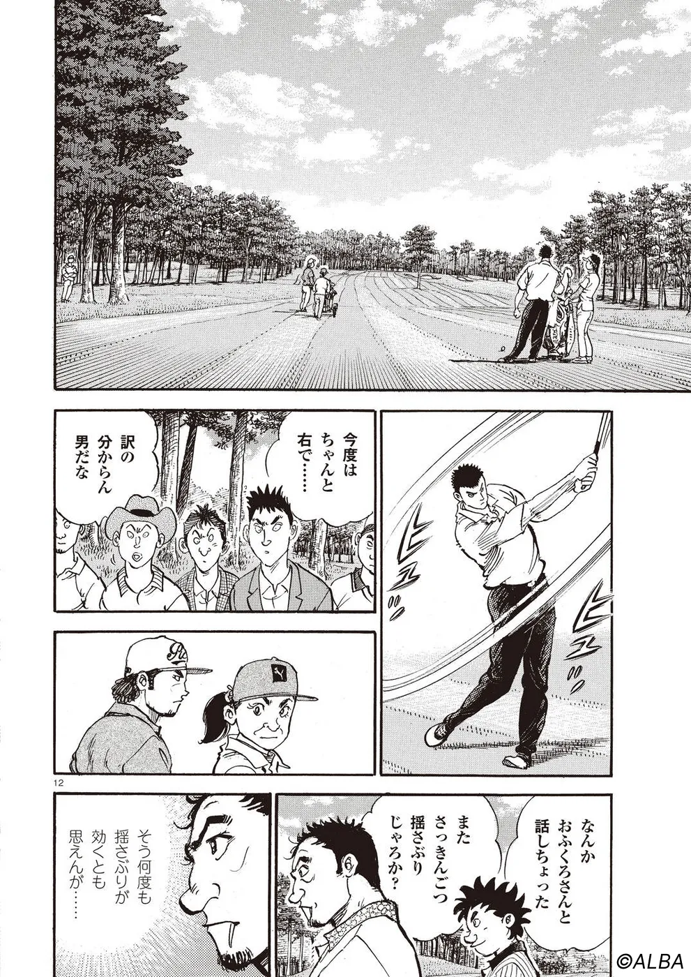 【第68巻あらすじ】刀鍛冶時代に作刀した1本を懸けて、世界ランクトップ10に入るリッキー・ハウラーとマッチプレーを戦うことになった鳴海一丸。さまざまな駆け引きが行われる中、戦いは8番ホールに入って一丸のワンダウン。互角の勝負を続けていたが、7番ホールのセカンドショットで痛めた左手首が、一丸のスイングに影響を与え始めていた…。
