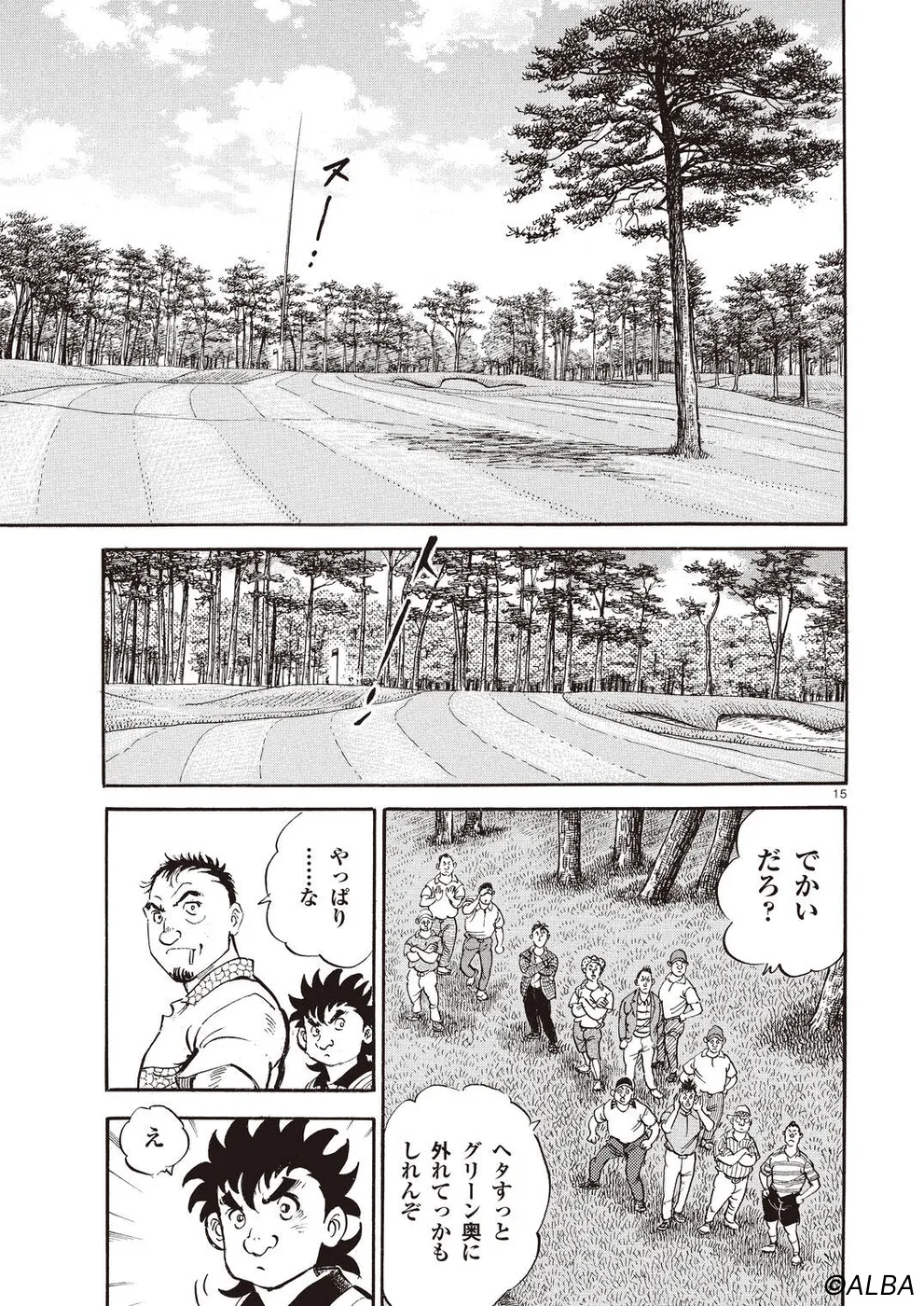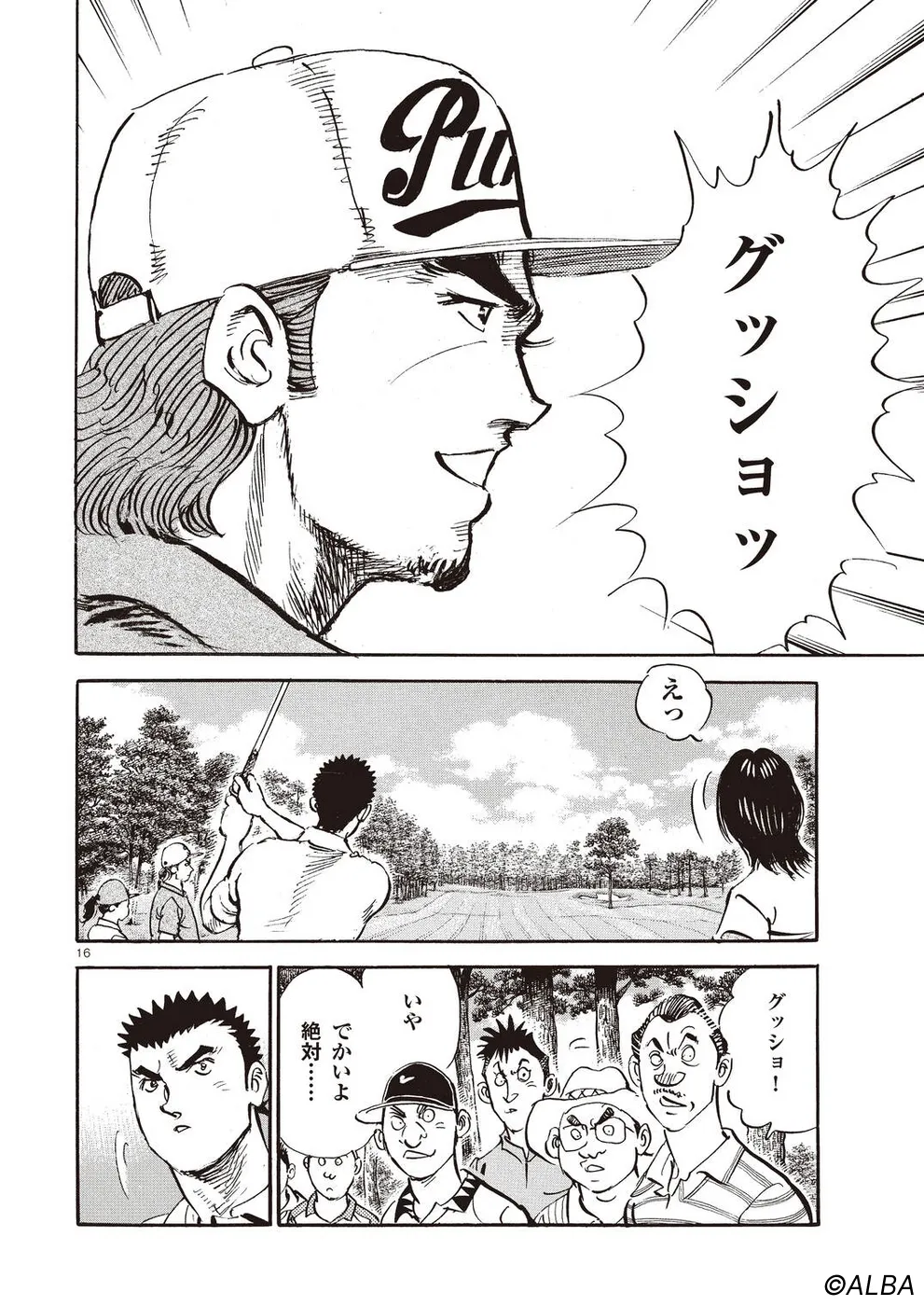 【第68巻あらすじ】刀鍛冶時代に作刀した1本を懸けて、世界ランクトップ10に入るリッキー・ハウラーとマッチプレーを戦うことになった鳴海一丸。さまざまな駆け引きが行われる中、戦いは8番ホールに入って一丸のワンダウン。互角の勝負を続けていたが、7番ホールのセカンドショットで痛めた左手首が、一丸のスイングに影響を与え始めていた…。