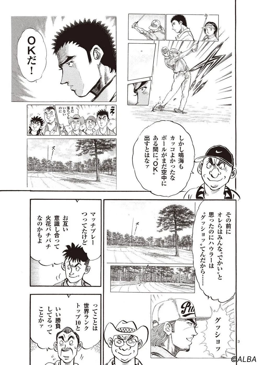 【第68巻あらすじ】刀鍛冶時代に作刀した1本を懸けて、世界ランクトップ10に入るリッキー・ハウラーとマッチプレーを戦うことになった鳴海一丸。さまざまな駆け引きが行われる中、戦いは8番ホールに入って一丸のワンダウン。互角の勝負を続けていたが、7番ホールのセカンドショットで痛めた左手首が、一丸のスイングに影響を与え始めていた…。