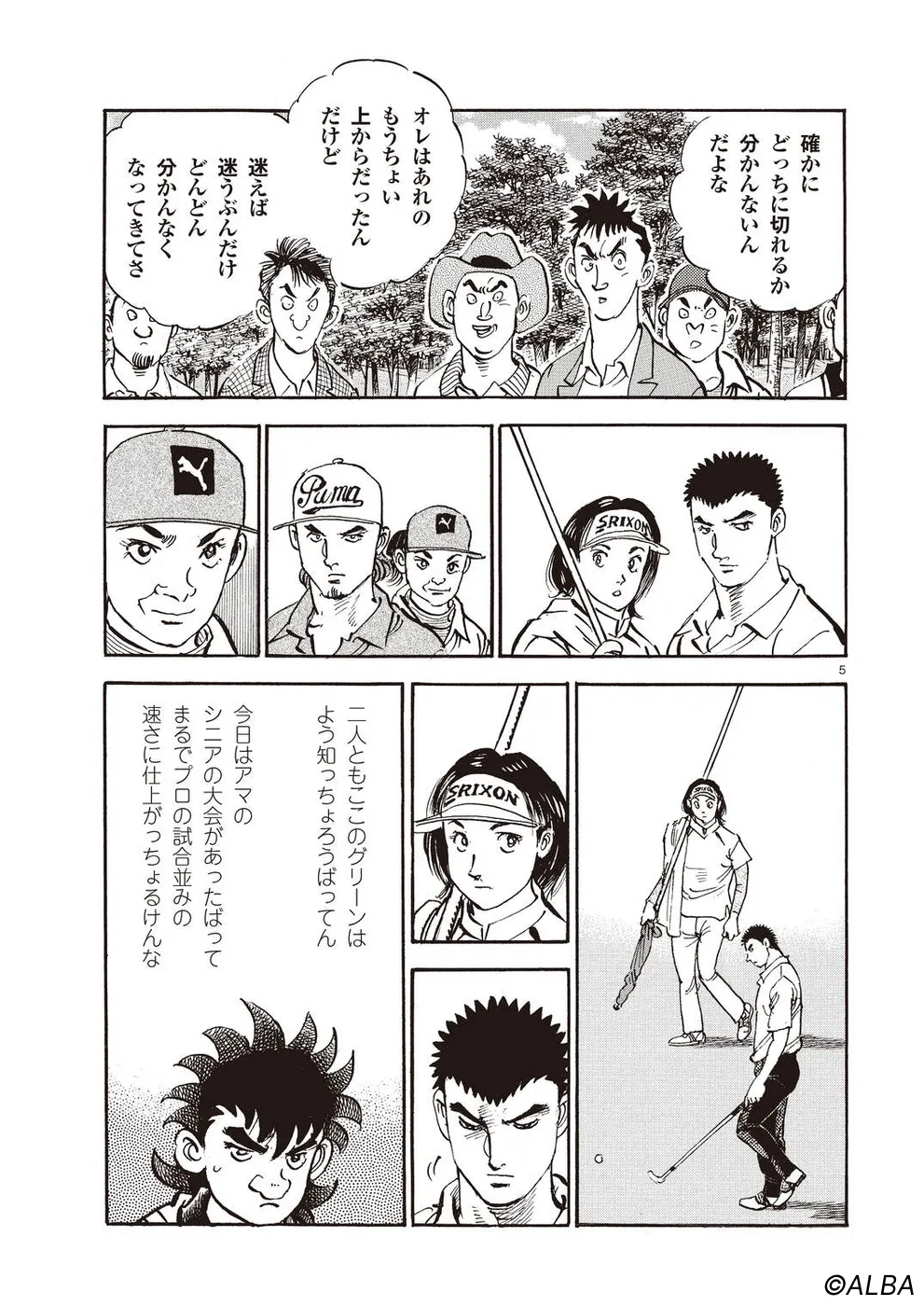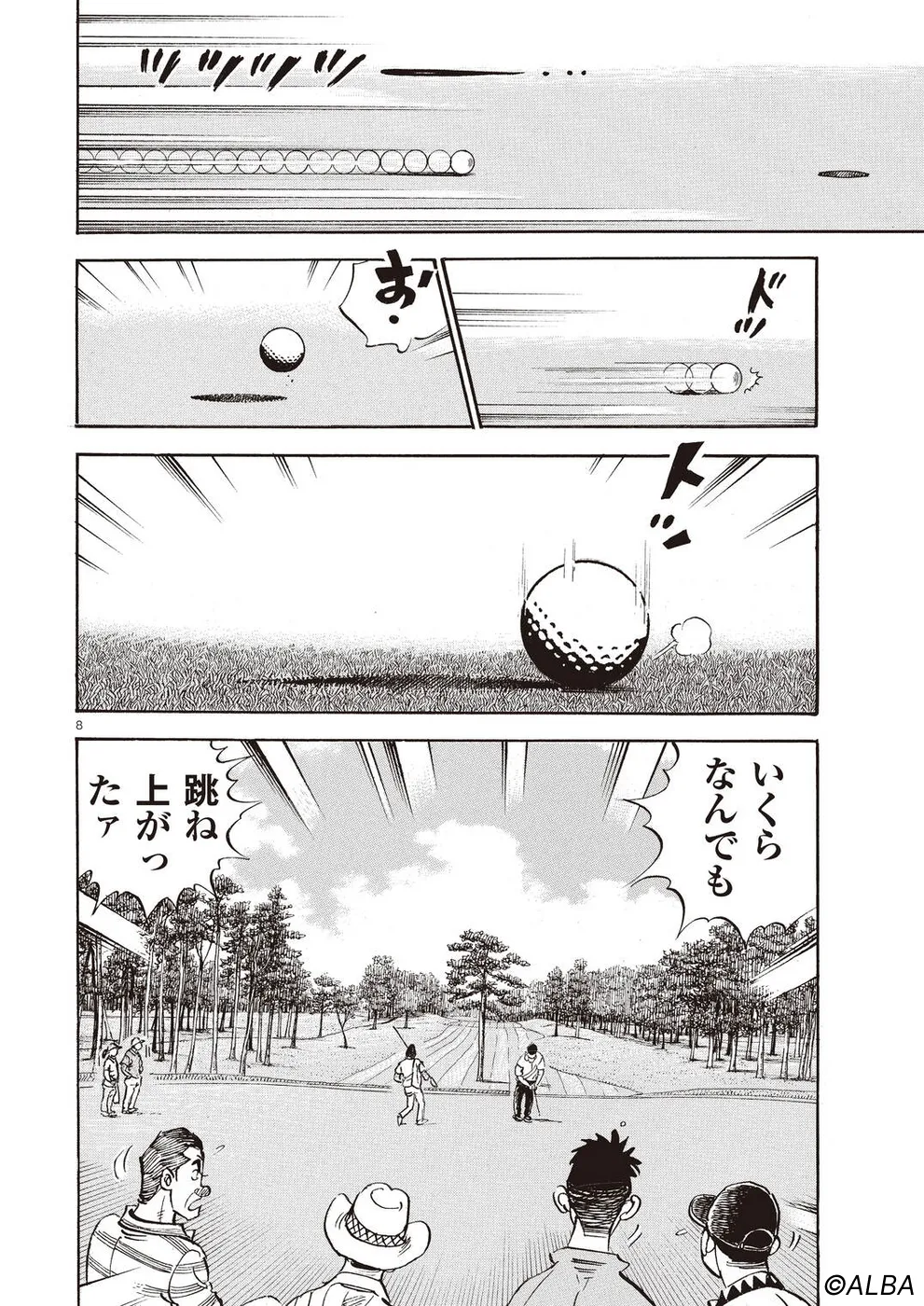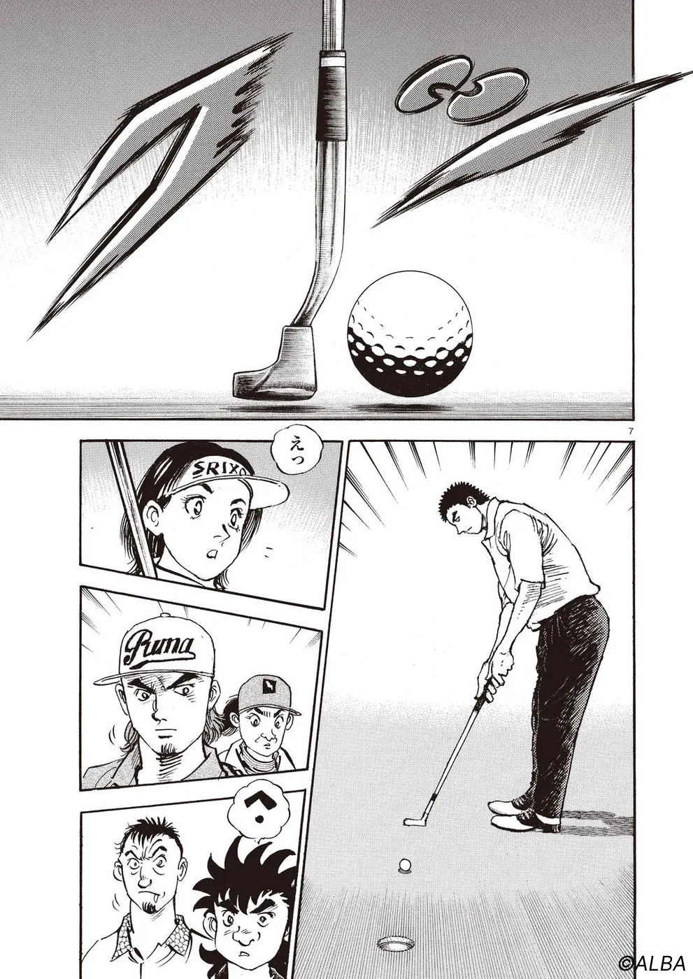 【第68巻あらすじ】刀鍛冶時代に作刀した1本を懸けて、世界ランクトップ10に入るリッキー・ハウラーとマッチプレーを戦うことになった鳴海一丸。さまざまな駆け引きが行われる中、戦いは8番ホールに入って一丸のワンダウン。互角の勝負を続けていたが、7番ホールのセカンドショットで痛めた左手首が、一丸のスイングに影響を与え始めていた…。