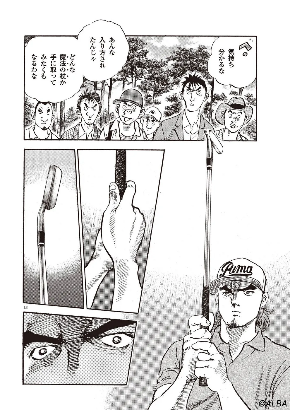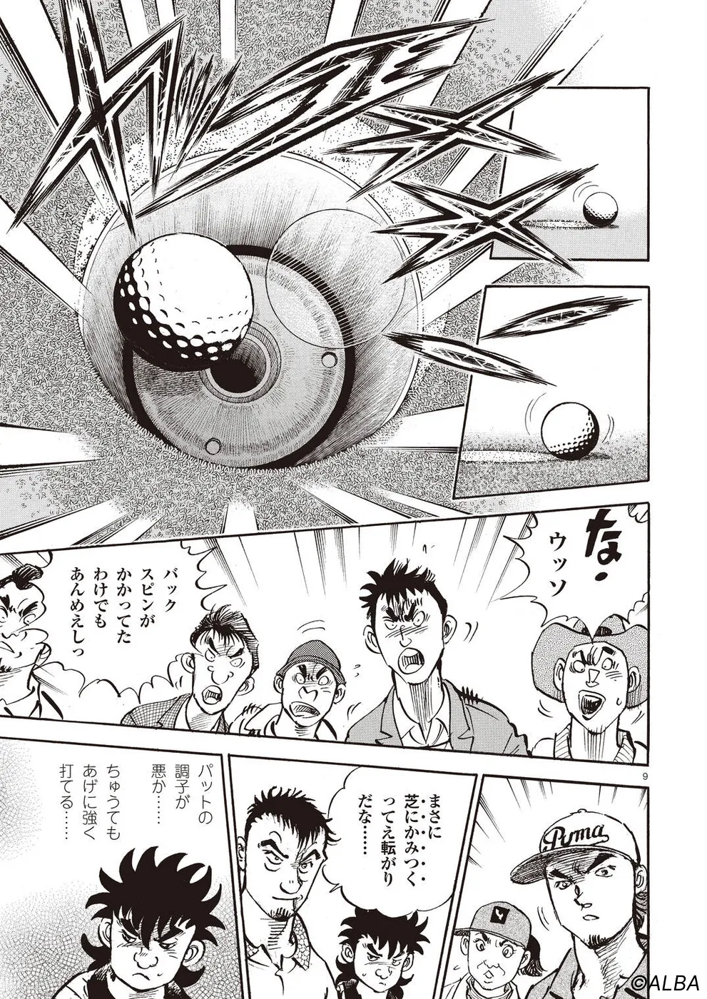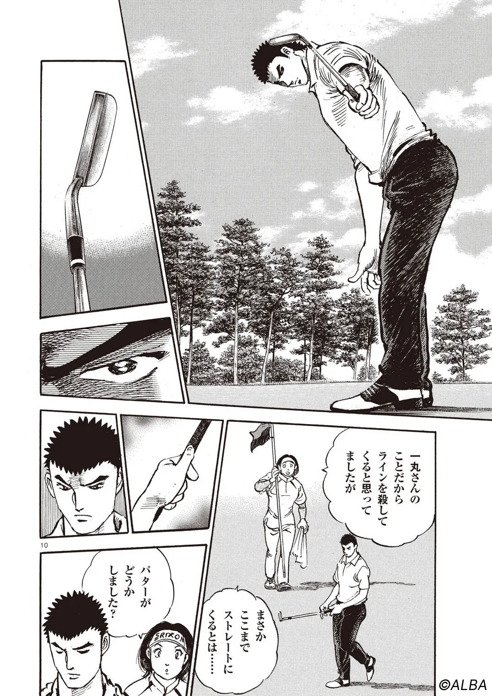 【第68巻あらすじ】刀鍛冶時代に作刀した1本を懸けて、世界ランクトップ10に入るリッキー・ハウラーとマッチプレーを戦うことになった鳴海一丸。さまざまな駆け引きが行われる中、戦いは8番ホールに入って一丸のワンダウン。互角の勝負を続けていたが、7番ホールのセカンドショットで痛めた左手首が、一丸のスイングに影響を与え始めていた…。
