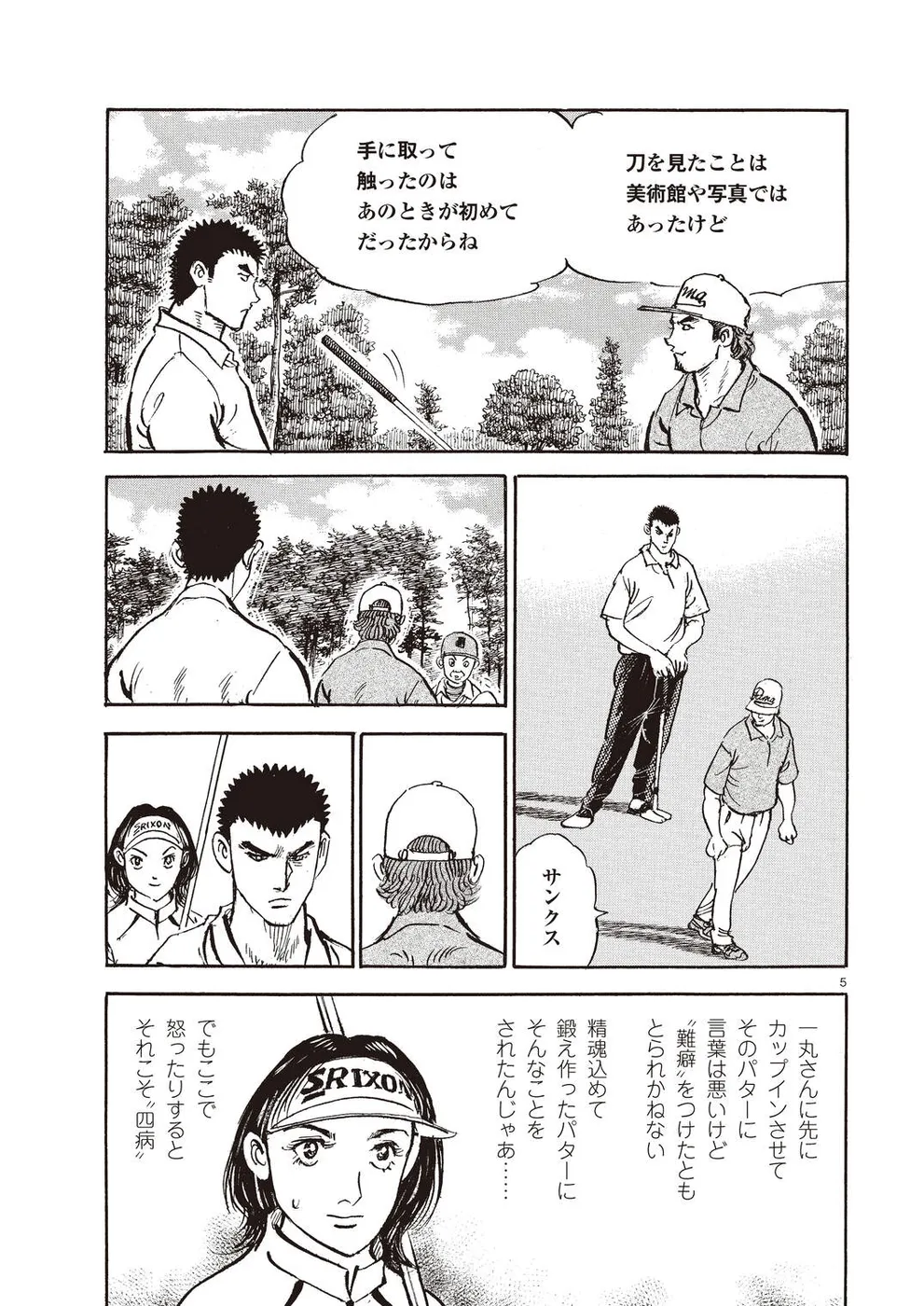 【第69巻あらすじ】自らが作刀した一本を懸けて、世界ランカーのリッキー・ハウラーとプライベートマッチを戦うことになった鳴海一丸。グリーン上でOKを出し合う互いの仕掛けが続く中、緊迫したゲームが展開。「中途半端な男が、中途半端に打っただけのもの。かなうなら、自らの手でたたき折ってしまいたい」という一丸のその刀への思いが、ゲームをリードするリッキーを追い込む…。