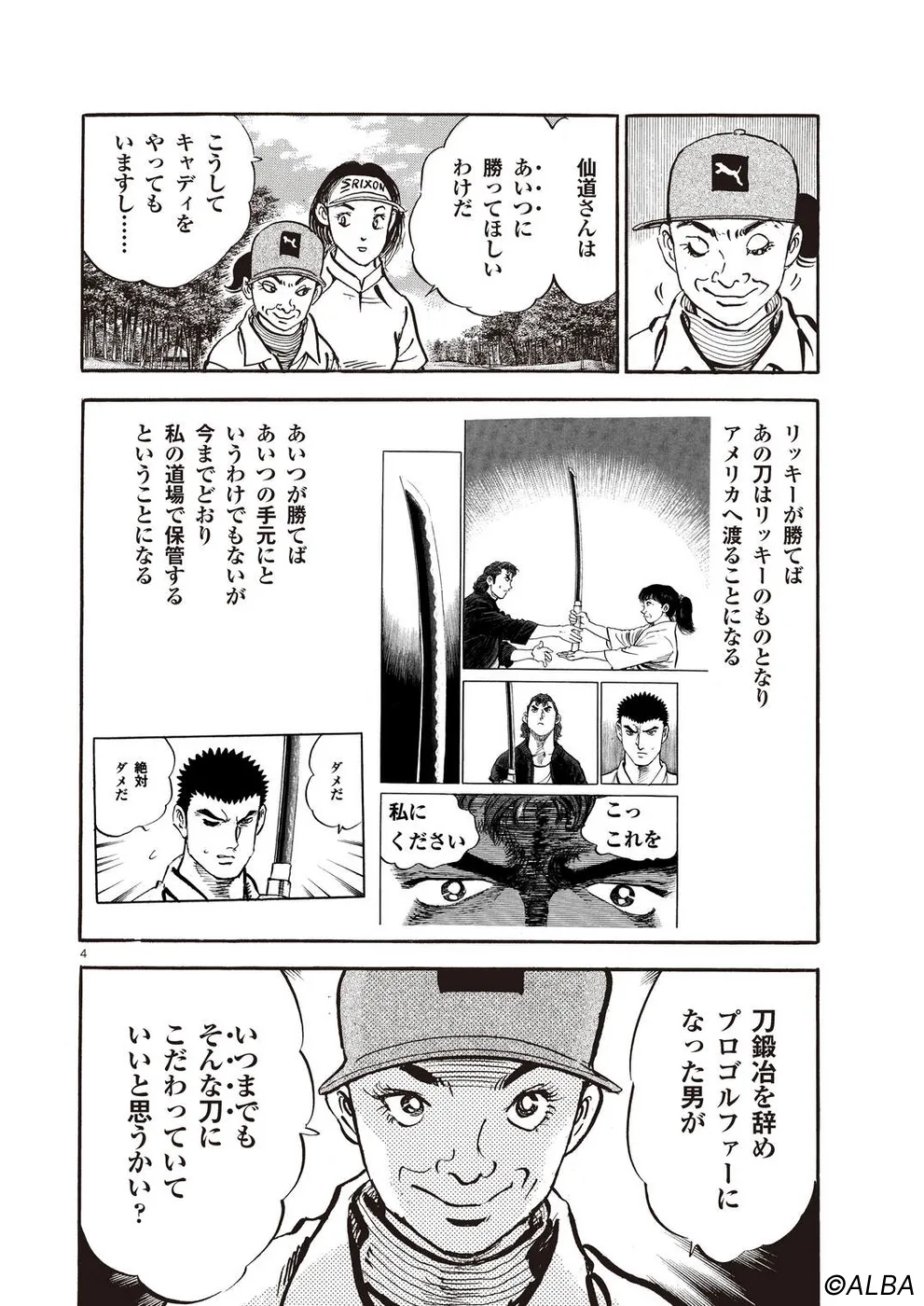 【第70巻あらすじ】プロゴルファーとして成長する鳴海一丸に、プライベートマッチを挑む者が現れた。世界トップランカーのリッキー・ハウラーだ。それは一丸が刀鍛冶時代に作刀した一本を手に入れたいというリッキーの頼みを、一丸が断ったことに端を発する。「金の問題じゃない! その刀をこの手でたたき折ってしまいたいんだ」、という一丸。何があって自分が鍛えた刀が気に入らないのか? 一丸のこだわりの理由が明らかになる!