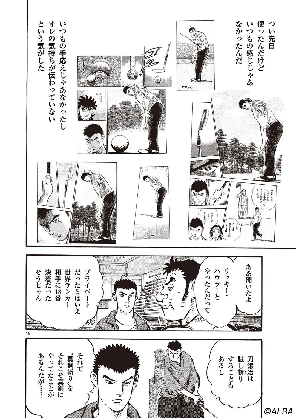 【第70巻あらすじ】プロゴルファーとして成長する鳴海一丸に、プライベートマッチを挑む者が現れた。世界トップランカーのリッキー・ハウラーだ。それは一丸が刀鍛冶時代に作刀した一本を手に入れたいというリッキーの頼みを、一丸が断ったことに端を発する。「金の問題じゃない! その刀をこの手でたたき折ってしまいたいんだ」、という一丸。何があって自分が鍛えた刀が気に入らないのか? 一丸のこだわりの理由が明らかになる!