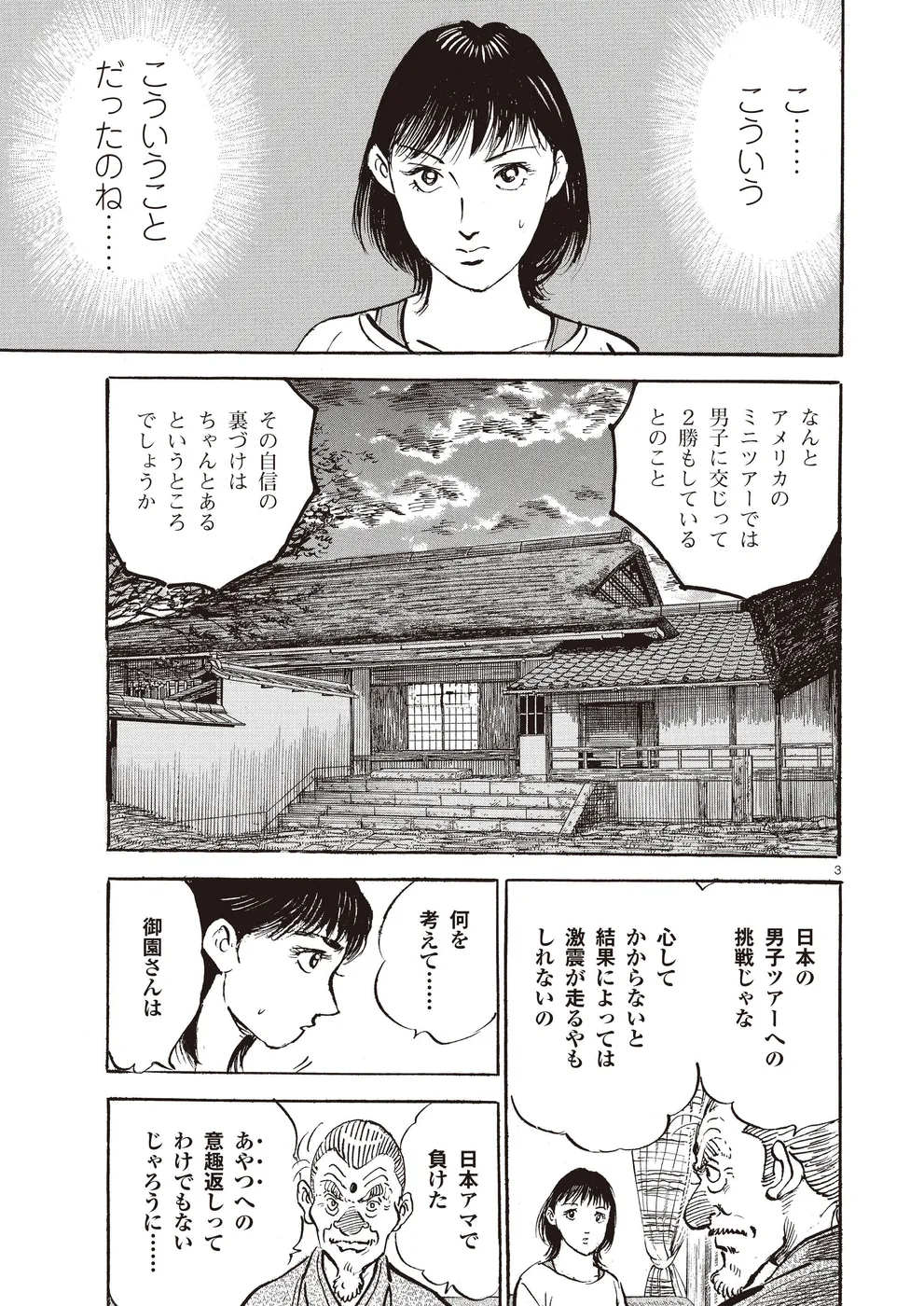 【第71巻あらすじ】鳴海一丸の前に、新たな好敵手が現れる。一丸も出場する新規大会「ホーライワールドチャンピオンズ」の招待選手の中に、世界トップランカーに名を連ねて異色のアマチュアゴルファーの名前があった。元軍人の米国人女性、ロレーナ・フォスターだ。軍では狙撃チームで任に当たっていたというフォスター。ゴルフでは、米国で取っていないアマチュアのタイトルはないというほどのキャリアだ。一方の一丸は、新たな武器となるパターを手に入れていた…。