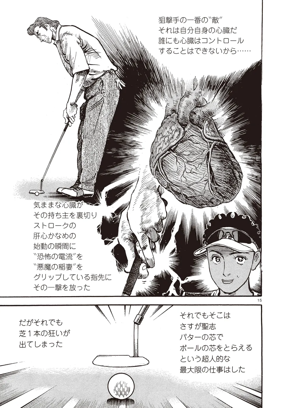 【第71巻あらすじ】鳴海一丸の前に、新たな好敵手が現れる。一丸も出場する新規大会「ホーライワールドチャンピオンズ」の招待選手の中に、世界トップランカーに名を連ねて異色のアマチュアゴルファーの名前があった。元軍人の米国人女性、ロレーナ・フォスターだ。軍では狙撃チームで任に当たっていたというフォスター。ゴルフでは、米国で取っていないアマチュアのタイトルはないというほどのキャリアだ。一方の一丸は、新たな武器となるパターを手に入れていた…。
