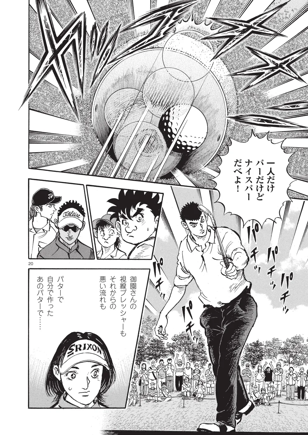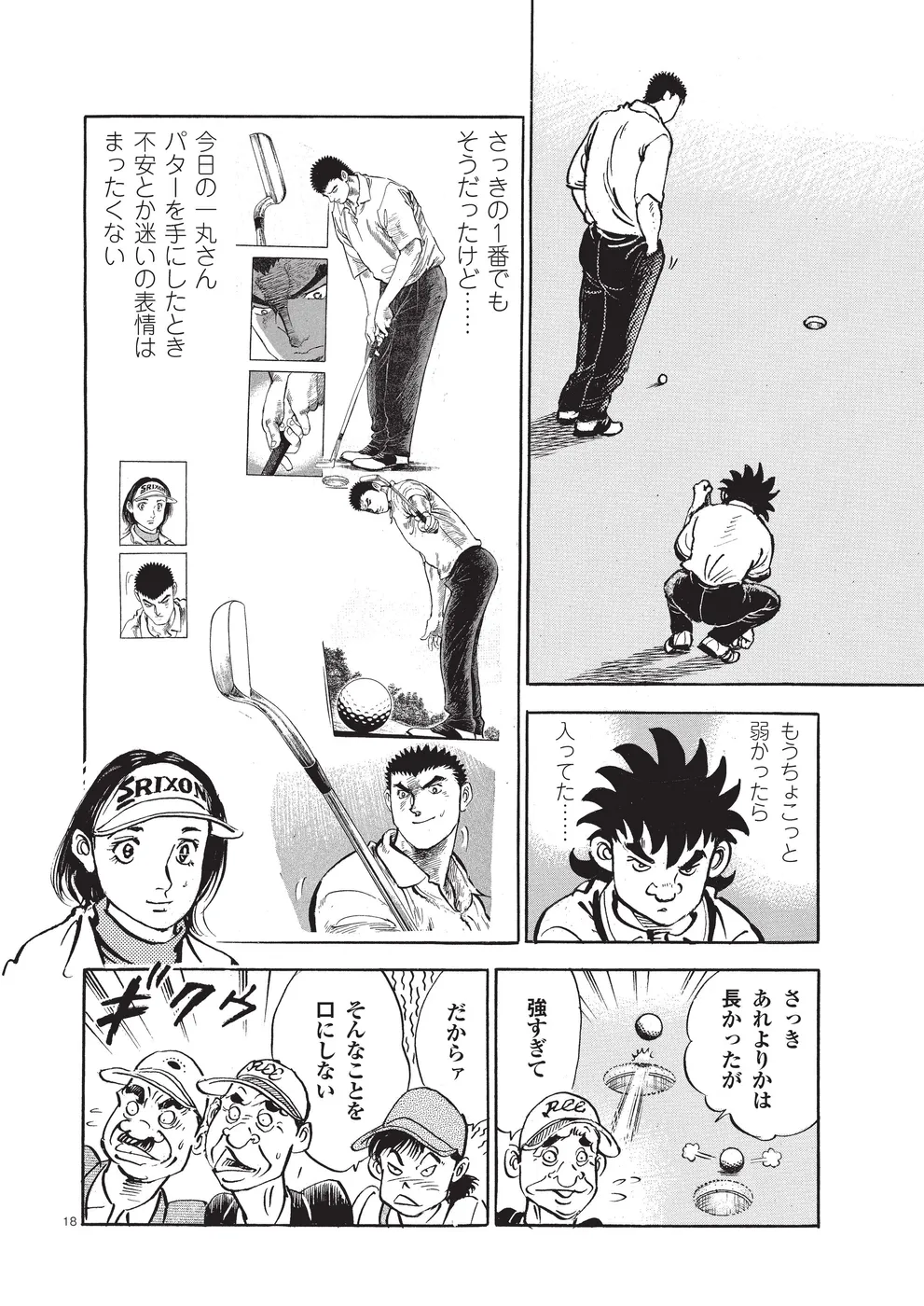 【第72巻あらすじ】ホーライワールドチャンピオンシップに出場した鳴海一丸。招待選手の中には、米国から参戦する元軍人の女子ゴルファー・フォスターがいた。フォスターのキャディを務めるのは競技を引退した鳴海の好敵手・御園聖志だった。初日、フォスターと同組のラウンドとなった鳴海は、御園を意識してしまうのか、マッチプレーのような強引な攻めを続けてしまうが…。