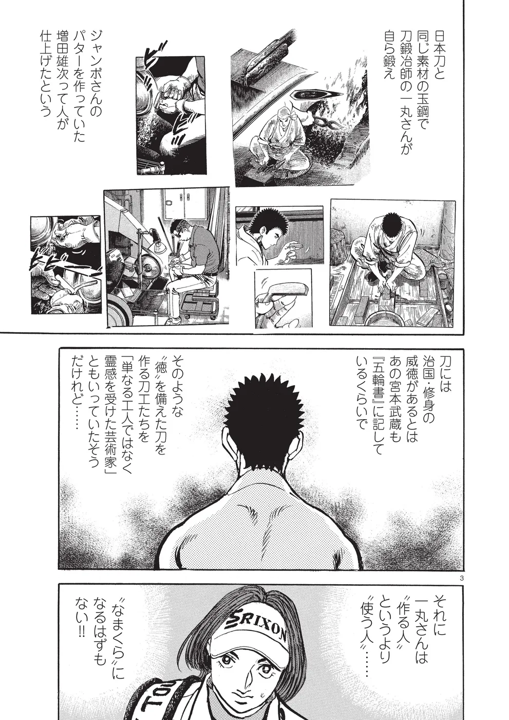 【第72巻あらすじ】ホーライワールドチャンピオンシップに出場した鳴海一丸。招待選手の中には、米国から参戦する元軍人の女子ゴルファー・フォスターがいた。フォスターのキャディを務めるのは競技を引退した鳴海の好敵手・御園聖志だった。初日、フォスターと同組のラウンドとなった鳴海は、御園を意識してしまうのか、マッチプレーのような強引な攻めを続けてしまうが…。