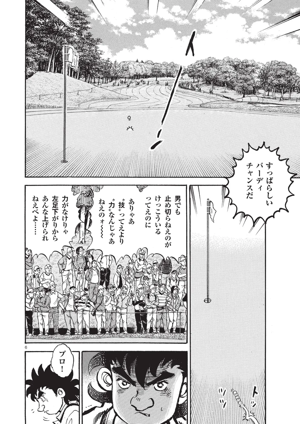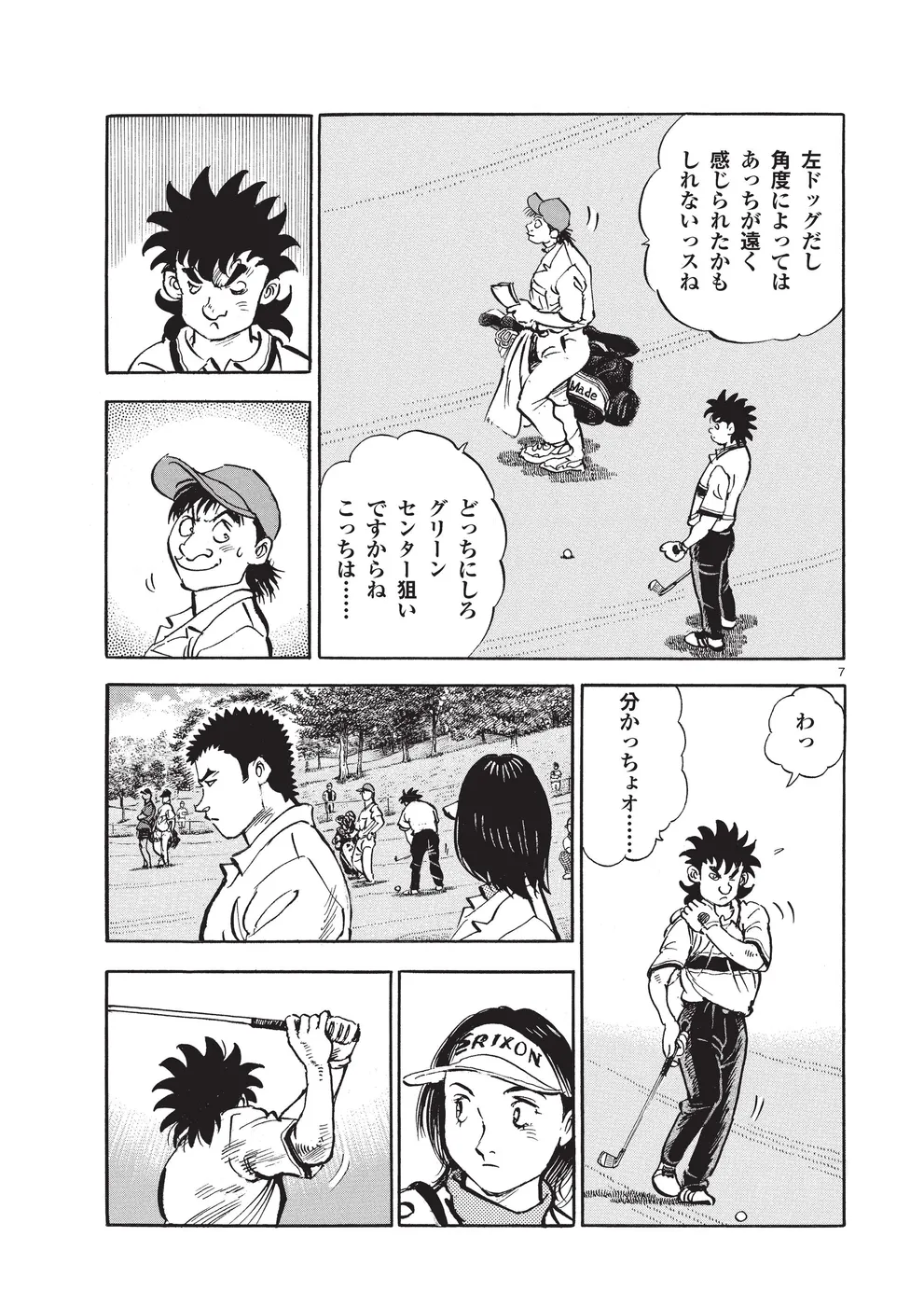 【第72巻あらすじ】ホーライワールドチャンピオンシップに出場した鳴海一丸。招待選手の中には、米国から参戦する元軍人の女子ゴルファー・フォスターがいた。フォスターのキャディを務めるのは競技を引退した鳴海の好敵手・御園聖志だった。初日、フォスターと同組のラウンドとなった鳴海は、御園を意識してしまうのか、マッチプレーのような強引な攻めを続けてしまうが…。