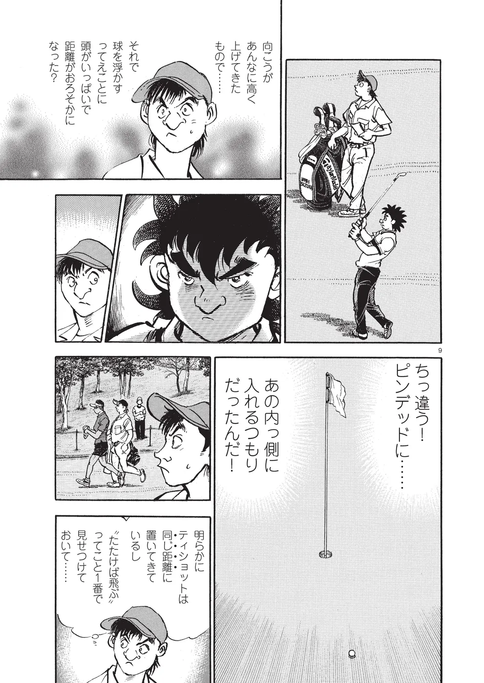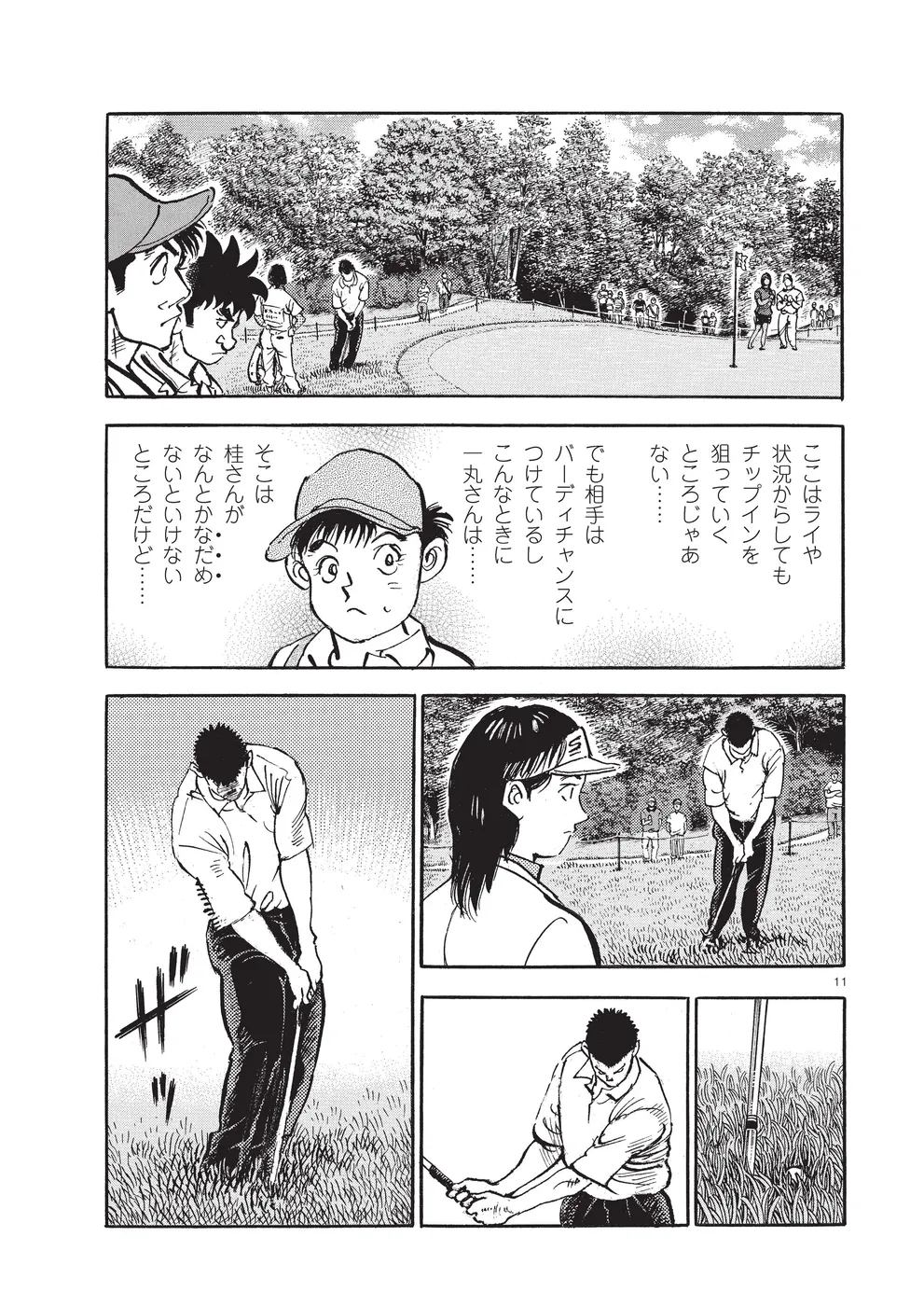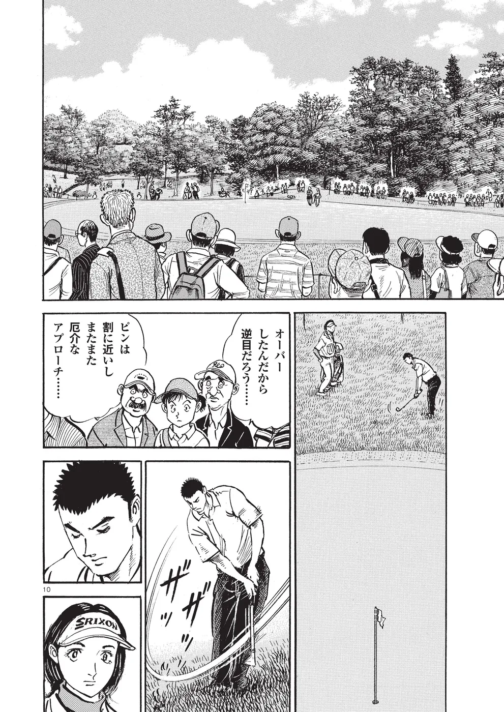 【第72巻あらすじ】ホーライワールドチャンピオンシップに出場した鳴海一丸。招待選手の中には、米国から参戦する元軍人の女子ゴルファー・フォスターがいた。フォスターのキャディを務めるのは競技を引退した鳴海の好敵手・御園聖志だった。初日、フォスターと同組のラウンドとなった鳴海は、御園を意識してしまうのか、マッチプレーのような強引な攻めを続けてしまうが…。