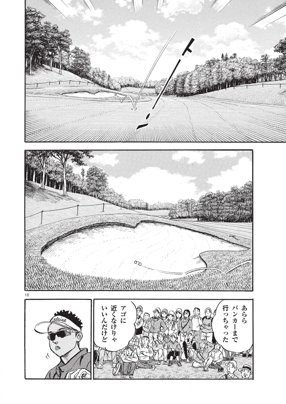 【第72巻あらすじ】ホーライワールドチャンピオンシップに出場した鳴海一丸。招待選手の中には、米国から参戦する元軍人の女子ゴルファー・フォスターがいた。フォスターのキャディを務めるのは競技を引退した鳴海の好敵手・御園聖志だった。初日、フォスターと同組のラウンドとなった鳴海は、御園を意識してしまうのか、マッチプレーのような強引な攻めを続けてしまうが…。