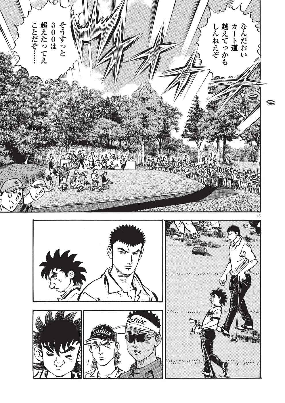 【第72巻あらすじ】ホーライワールドチャンピオンシップに出場した鳴海一丸。招待選手の中には、米国から参戦する元軍人の女子ゴルファー・フォスターがいた。フォスターのキャディを務めるのは競技を引退した鳴海の好敵手・御園聖志だった。初日、フォスターと同組のラウンドとなった鳴海は、御園を意識してしまうのか、マッチプレーのような強引な攻めを続けてしまうが…。