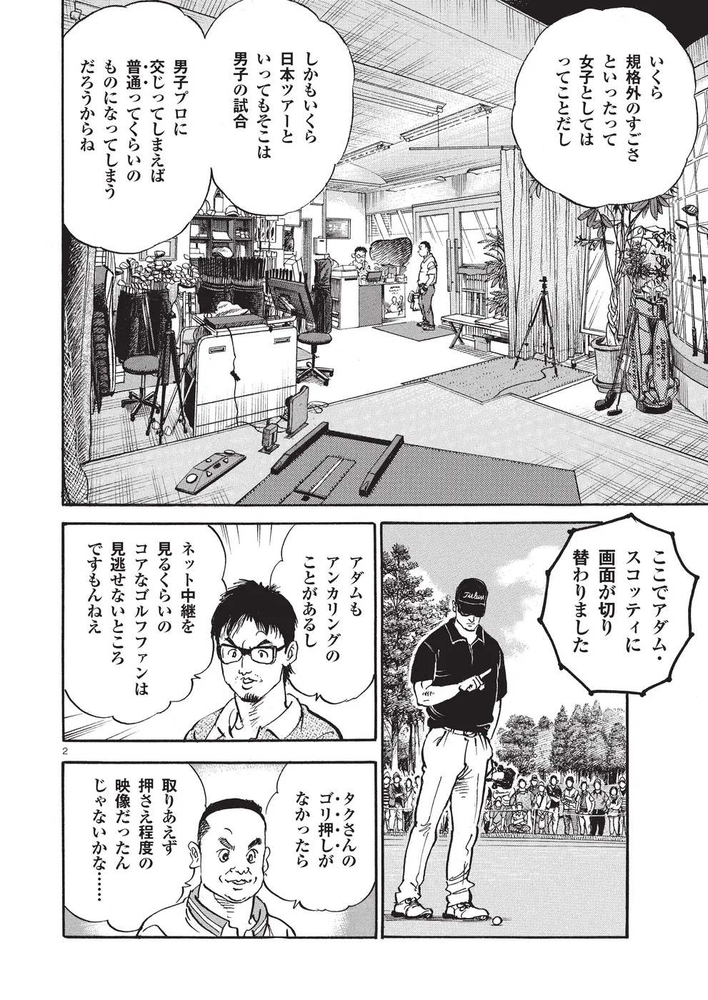 【第73巻あらすじ】ホーライワールドチャンピオンズに出場する鳴海一丸に、御園聖志が刺客を送り込んだ。刺客は元米国軍人の女子ゴルファー、フォスターだった。女子にしてはかなりの腕前だが、男子ツアーに喝を入れるというほどでもない様子……。しかし、まだまだ底知れぬ実力を一丸は感じ、フォスターの存在を意識しすぎるほど意識し始めていた。同組で回る二人の戦いは、マッチプレーのように激しさを増していく…。