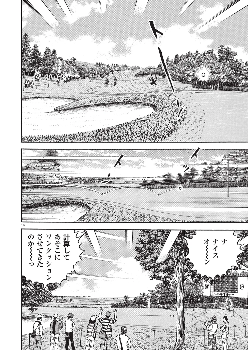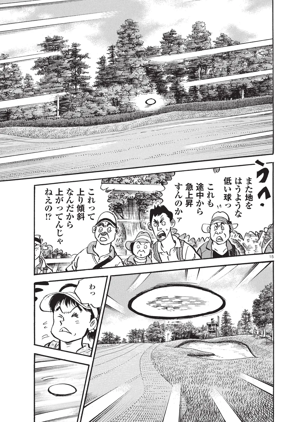 【第74巻あらすじ】ホーライワールドチャンピオンズに出場した鳴海一丸。同組には因縁のライバル御園聖志が鳴海を倒すために送り込んだ刺客、元米国軍人のフォスターが。女性ながらに戦場で狙撃手の観測手の任務に就いていたフォスターは、軍に入る前はトップアマとして活躍していた腕前。互いを強く意識する鳴海とフォスター。予選ラウンドは、まるでマッチプレーの様相を見せていた。