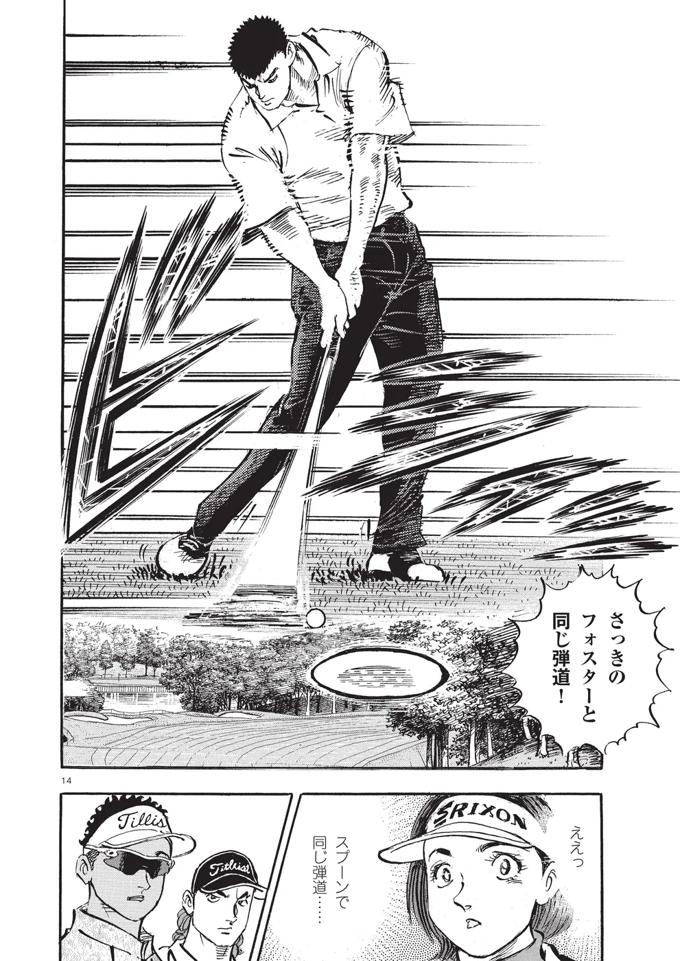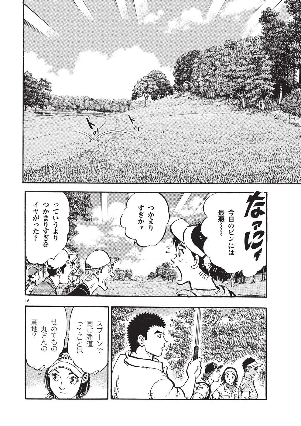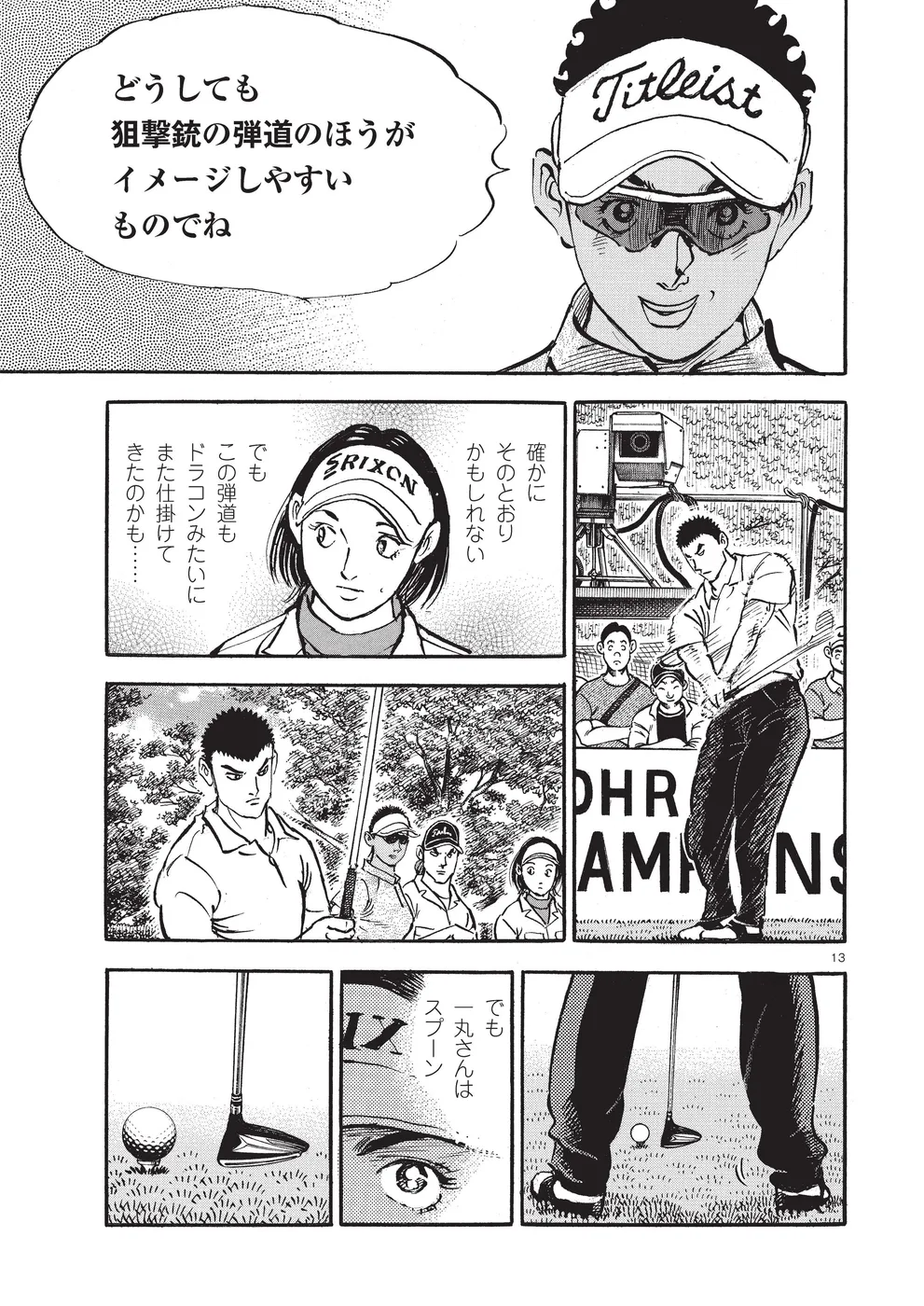 【第74巻あらすじ】ホーライワールドチャンピオンズに出場した鳴海一丸。同組には因縁のライバル御園聖志が鳴海を倒すために送り込んだ刺客、元米国軍人のフォスターが。女性ながらに戦場で狙撃手の観測手の任務に就いていたフォスターは、軍に入る前はトップアマとして活躍していた腕前。互いを強く意識する鳴海とフォスター。予選ラウンドは、まるでマッチプレーの様相を見せていた。