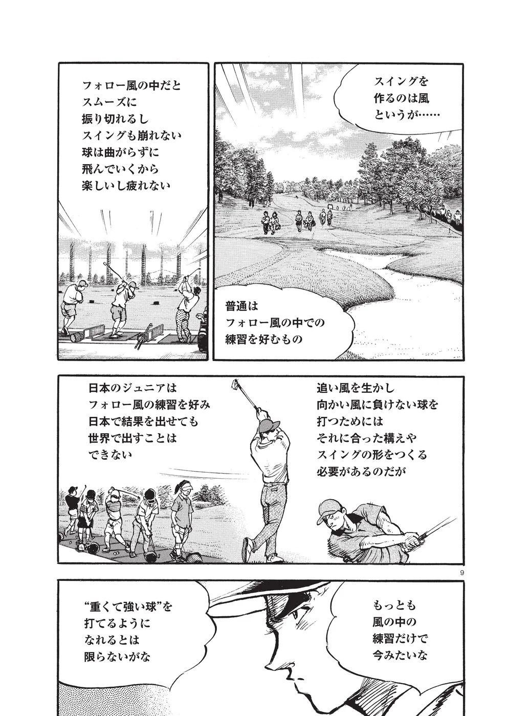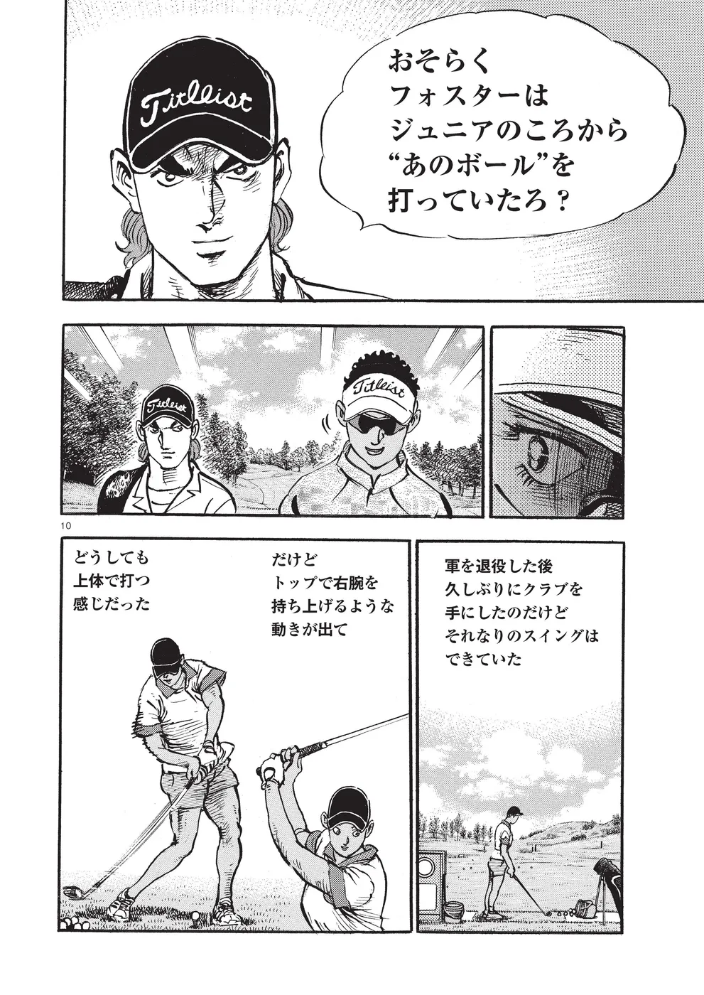 【第74巻あらすじ】ホーライワールドチャンピオンズに出場した鳴海一丸。同組には因縁のライバル御園聖志が鳴海を倒すために送り込んだ刺客、元米国軍人のフォスターが。女性ながらに戦場で狙撃手の観測手の任務に就いていたフォスターは、軍に入る前はトップアマとして活躍していた腕前。互いを強く意識する鳴海とフォスター。予選ラウンドは、まるでマッチプレーの様相を見せていた。